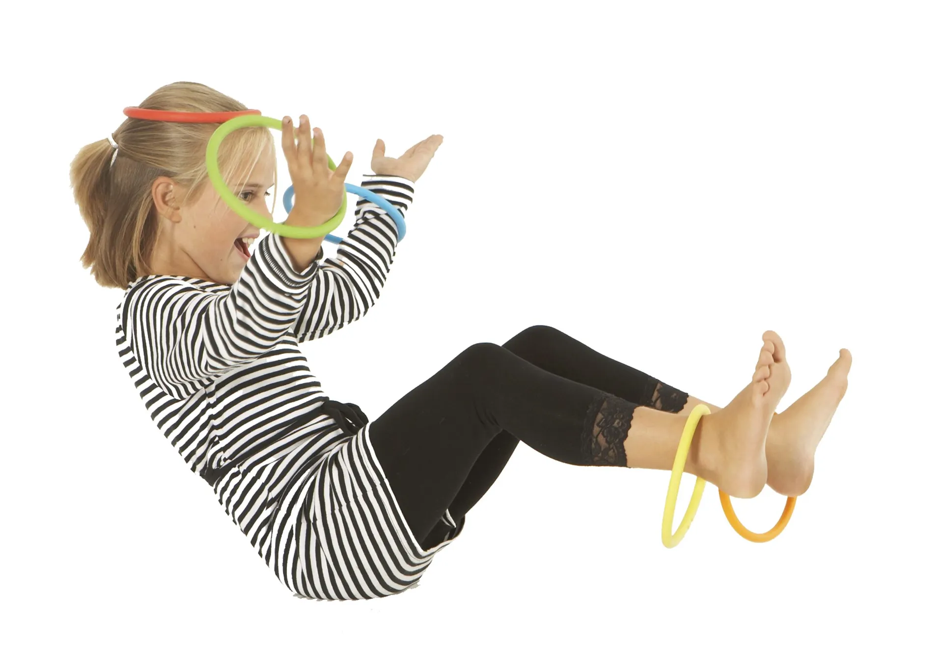 Mit den Jubee Activity Rings können Kinder und Erwachsene ihrer Fantasie freien Lauf lassen. Ob man die Ringe an Armen und Beinen jongliert, sich diese gegenseitig zuwirft, mit den Ringen an den Beinen hüpft oder kreative Figuren baut - die Möglichkeiten sind endlos. Diese vielseitigen Ringe eignen sich hervorragend sowohl für spontane Spielideen als auch für strukturierte Aktivitäten in Verbindung mit Spiel, Rhythmik und Gymnastik. Ihre Flexibilität fördert zudem sowohl individuelle als auch soziale Aspekte beim Spielen.