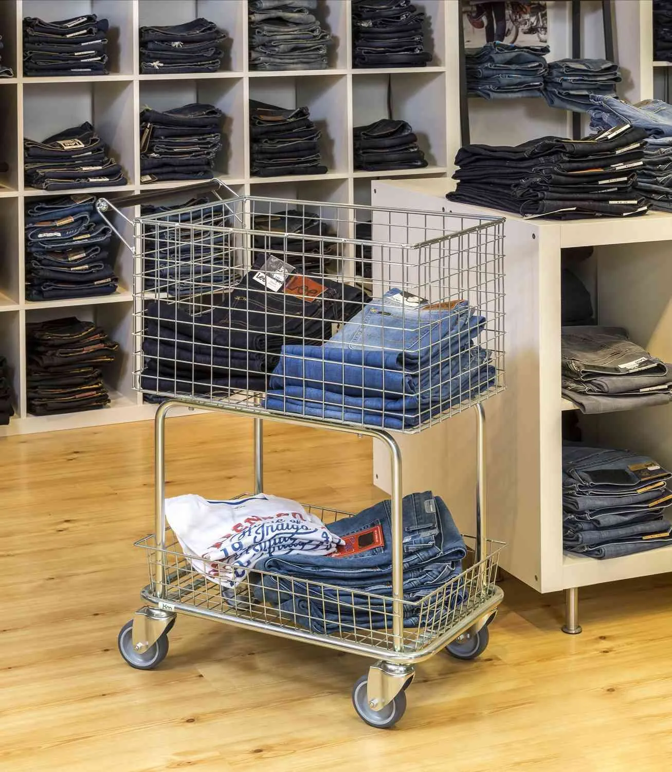Dank der vier Lenkrollen mit einem Durchmesser von 100 mm ist der Allzweckwagen sehr wendig und kann mühelos durch enge Gänge oder über unebene Bodenflächen manövriert werden. Dies macht den Allzweckwagen von Jubee zur idealen Wahl für den Einsatz in Lagerhäusern, Werkstätten oder auch in Einzelhandelsgeschäften.