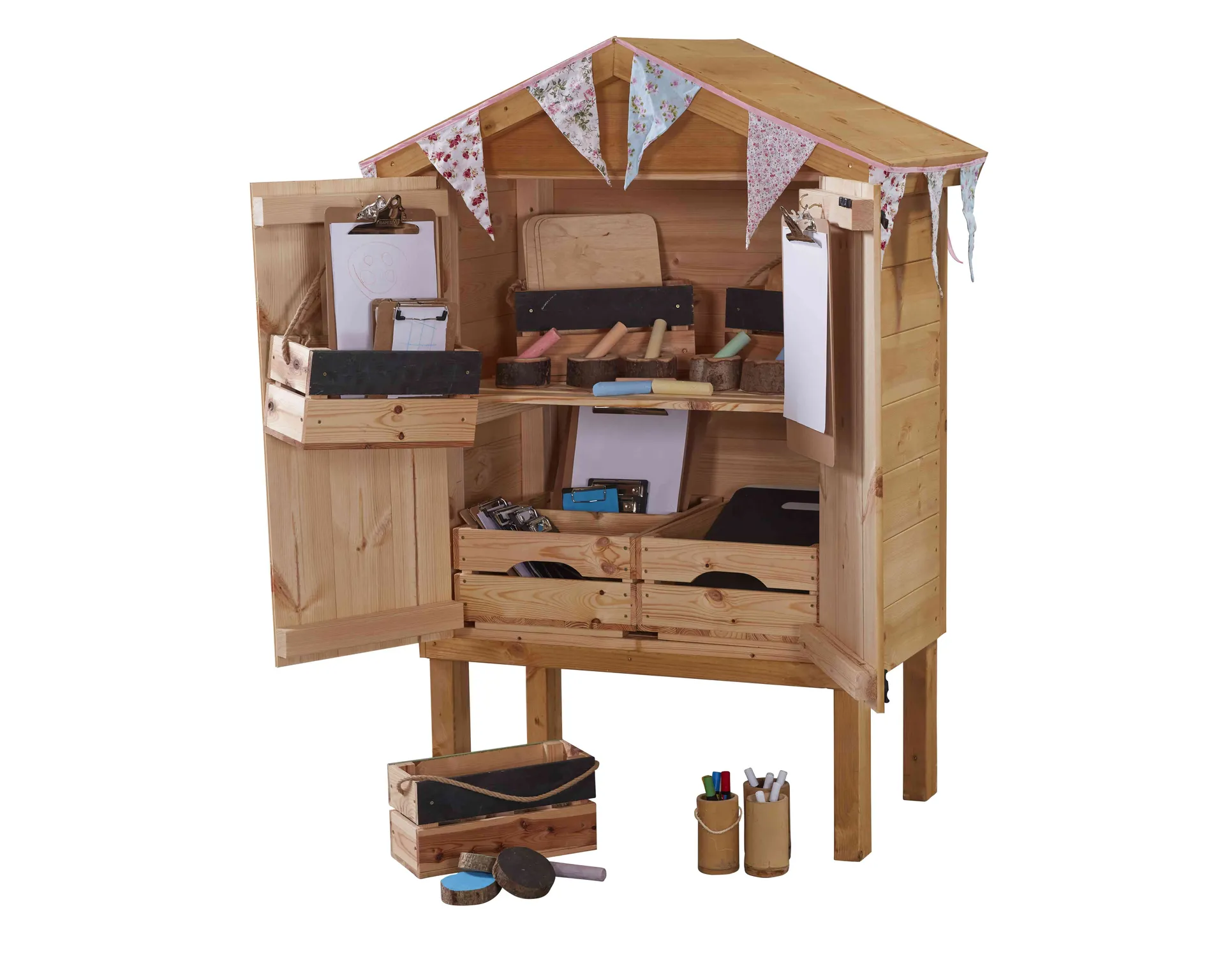 Besonders praktisch ist, dass das Bücherhäuschen nicht nur Platz für Bücher bietet. Auch Stifte, Hefte, Naturmaterialien oder Lernkarten finden im Inneren einen eigenen Platz. Das fördert Ordnungssinn und Selbstorganisation auf spielerische Weise. Gleichzeitig regt das Bücherhäuschen die Fantasie an: Es kann zur „Bücherei“, zum „Entdeckerhaus“ oder zur „Schatzkiste des Wissens“ werden.