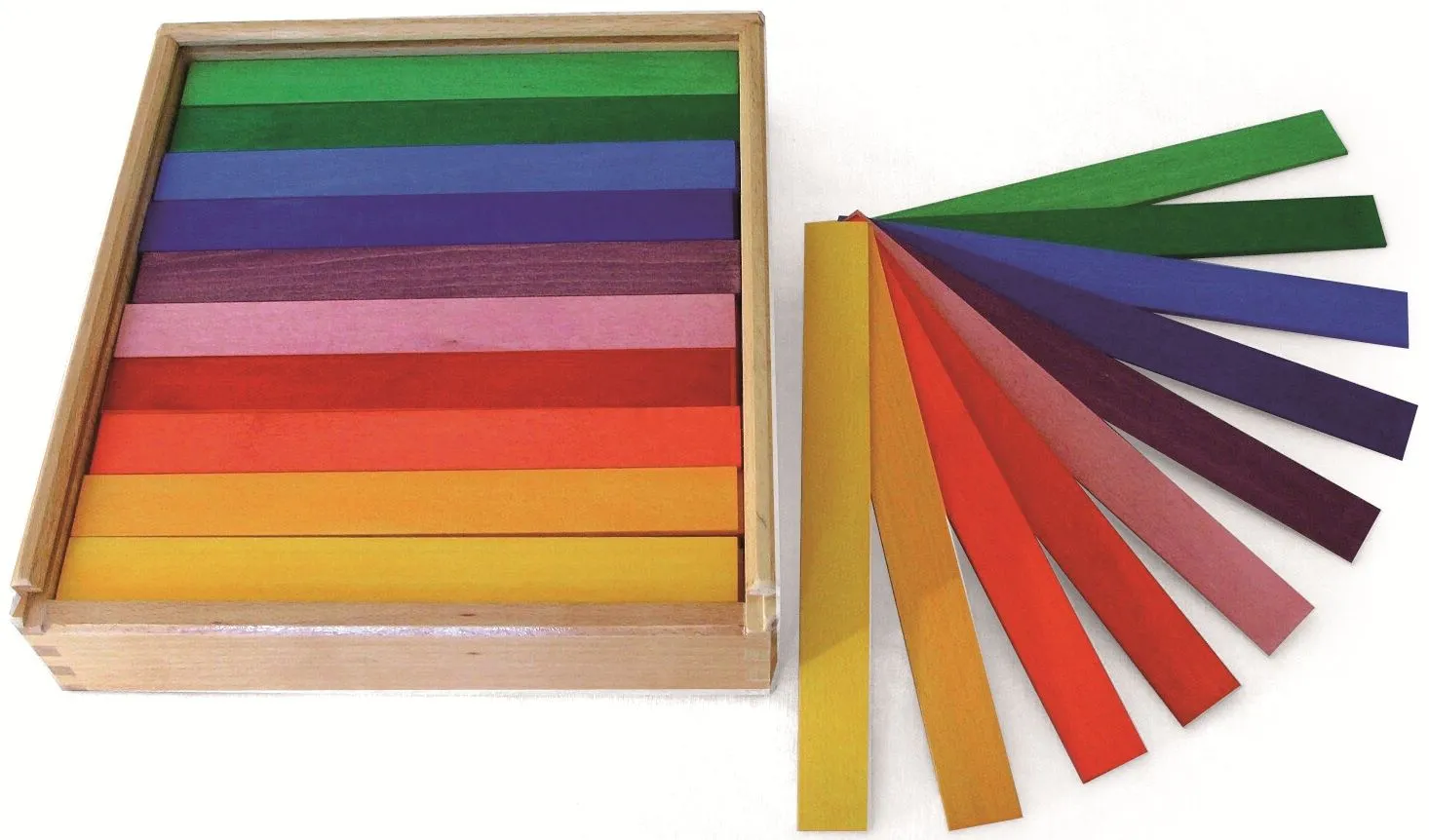 Bunte Zählstäbchen, etwa nach dem Montessori-Prinzip, sind in Vorschule und Grundschule bekannt und beliebt. Die Holzplättchen erleichtern erste Zählübungen und machen Mathematik anschaulich: drei rote plus vier grüne Stäbchen, wie viele Stäbchen sind das insgesamt? Und was geschieht, wenn jetzt zwei gelbe Plättchen dazukommen? Dank der Farben können sich die Kinder einfacher orientieren und verlieren den Überblick nicht.