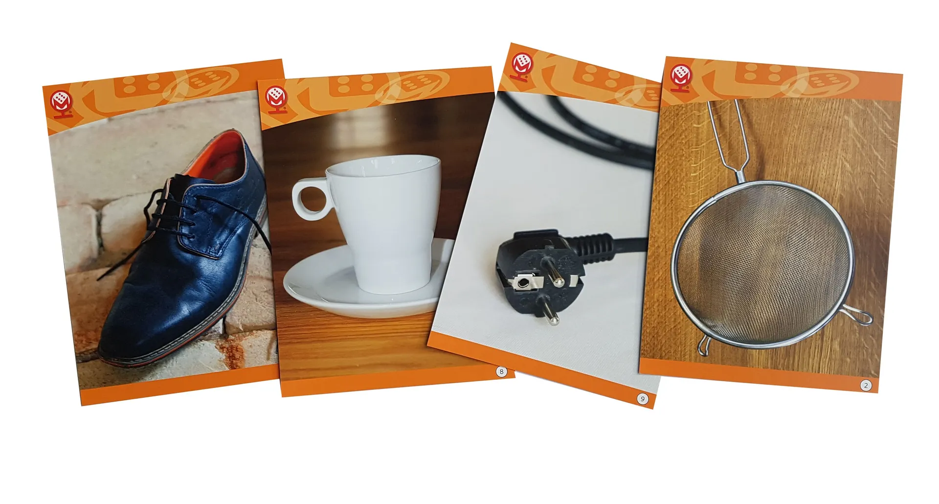 Wählen Erzieher, betreuende Personen und Eltern die klassische Spielvariante, werden die Motive auf den Karten nach und nach aufgedeckt. Der Kartensatz ist mit 78 Motiven so umfangreich, dass keine Langeweile aufkommt. Aufgrund des hochwertigen Bilderdrucks mit brillanten Farben und der angenehmen Größe der Karten mit einer Breite von 14,5 cm und einer Höhe von 19,5 cm sind die Motive gut erkennbar. Doch Achtung: Die einfachsten Gegenstände entpuppen sich oft als diejenigen, die am schwierigsten zu erraten sind und für die größten Überraschungselemente sorgen.