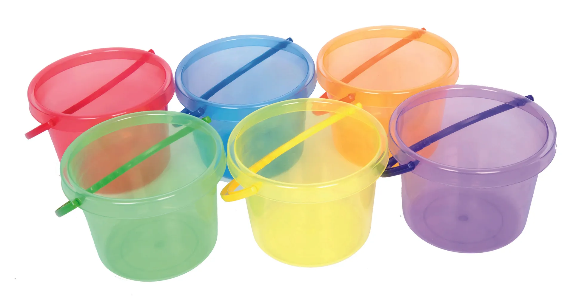 Das Set enthält wahlweise 12 oder 24 transparente, bunte Eimer transluzent in den Farben Gelb, Grün, Blau, Rot, Violett und Orange. Damit richtet sich dieses Angebot vor allem an Kindertagesstätten, Kindergärten, Horte und ähnliche Einrichtungen. Die Eimer transluzent sind mit einem Durchmesser von 16,2 Zentimetern und einer Höhe von 12,2 Zentimetern optimal für kleine Kinder geeignet und liegen gut in der Hand. Mit knapp 2,5 Litern Füllvolumen können die Kinder schnell Nachschub an Sand oder Wasser besorgen. Dank des stabilen Kunststoffes sind die Eimer transluzent langlebig und halten vielen Abenteuern stand.