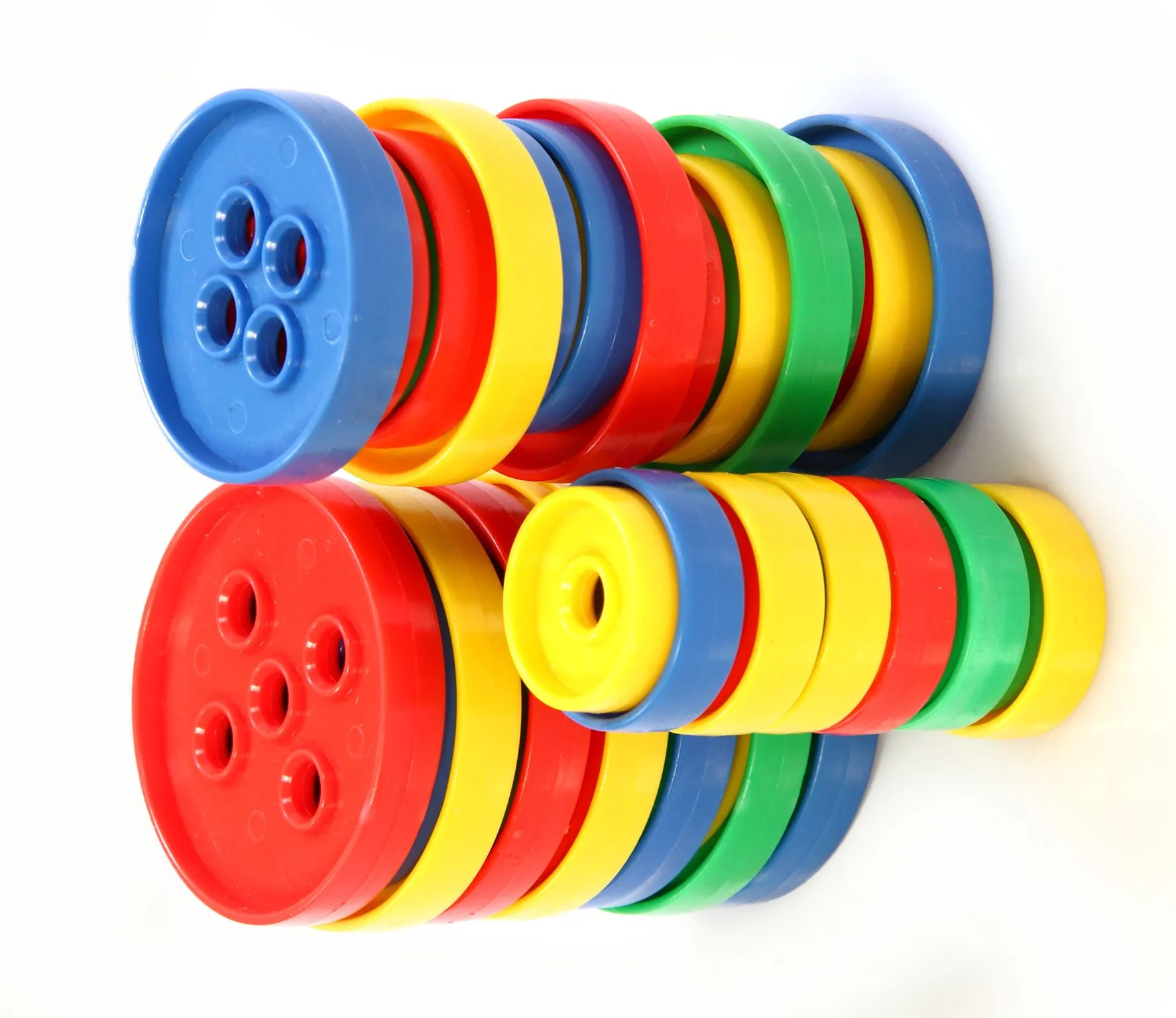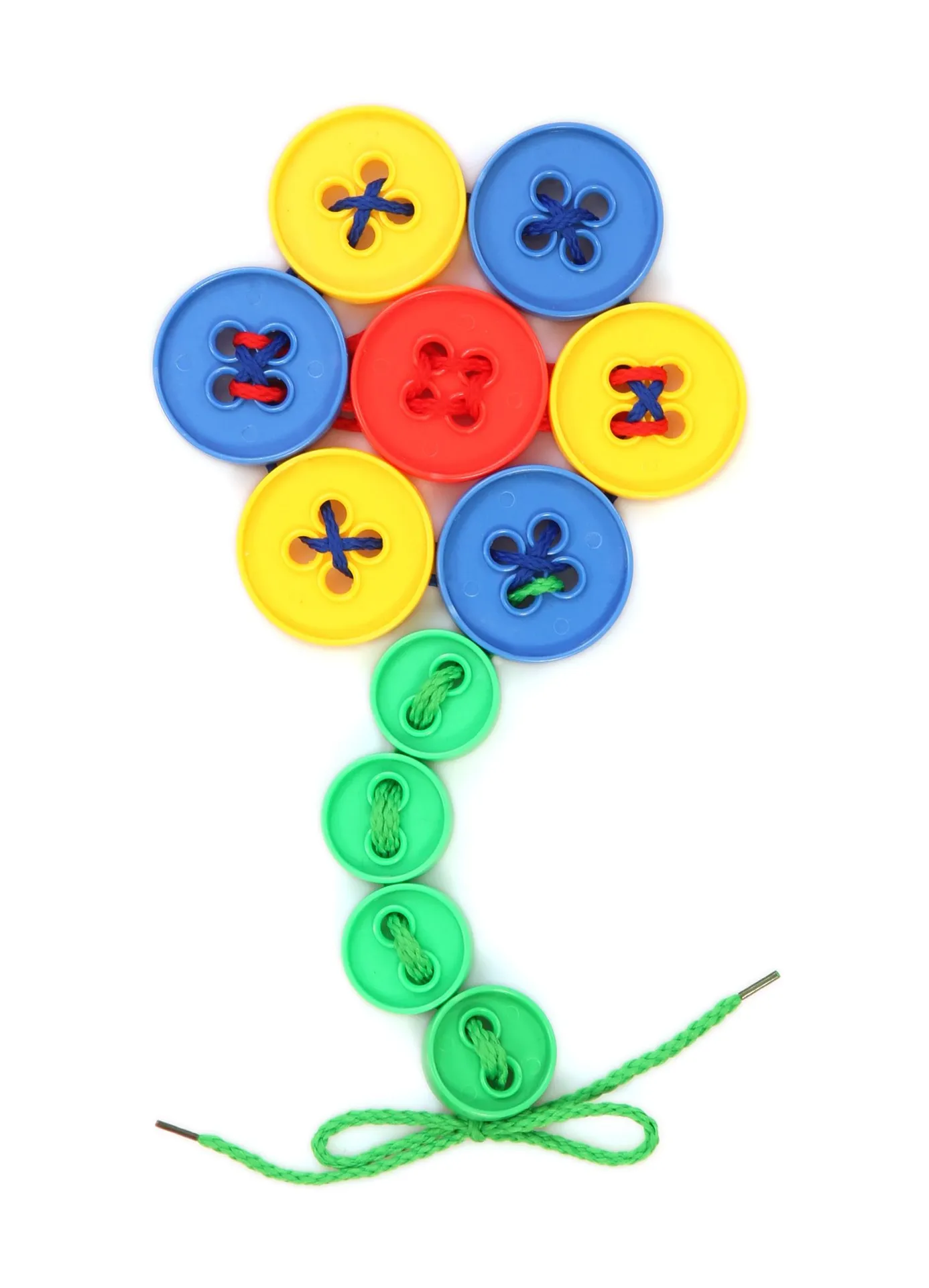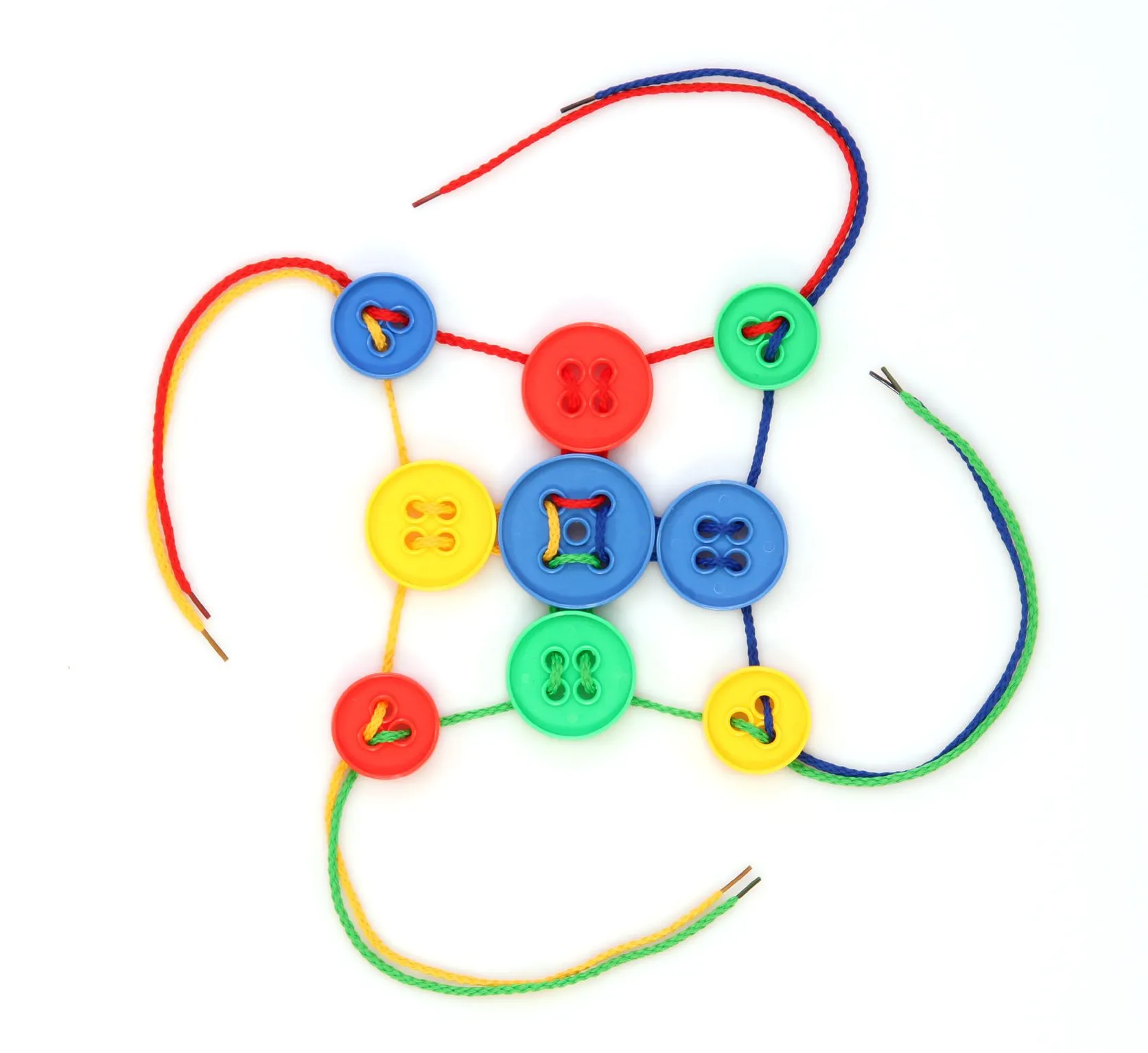 Blau, Rot, Grün und Gelb - mit Fädelknöpfen wird die Welt bunt
