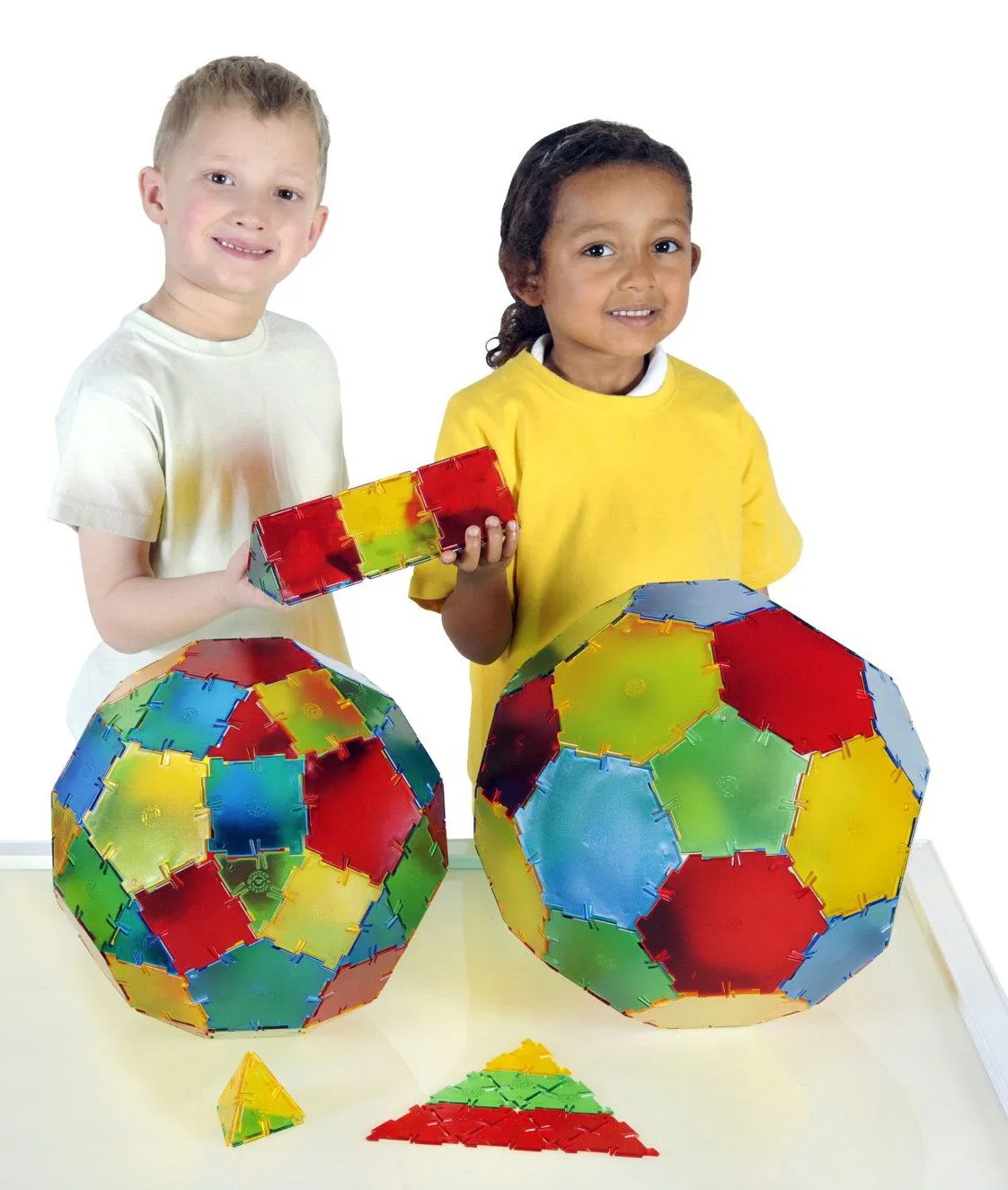 Das Bauspiel ist für die Innenanwendung konzipiert. Es besteht aus 184 Kunststoffteilen, die sich zusammenstecken lassen. Mit etwas Übung und Nachdenken könne die Kinder zwei oder dreidimensionale Objekte wie eine Pyramide oder eine Kugel bauen. Die einzelnen Teile sind fröhlich bunt und aus sehr stabilem, transluzent leuchtendem Kunststoff gefertigt. Das Set umfasst auch ein Anleitungsheft in englischer Sprache mit didaktischen Anregungen.