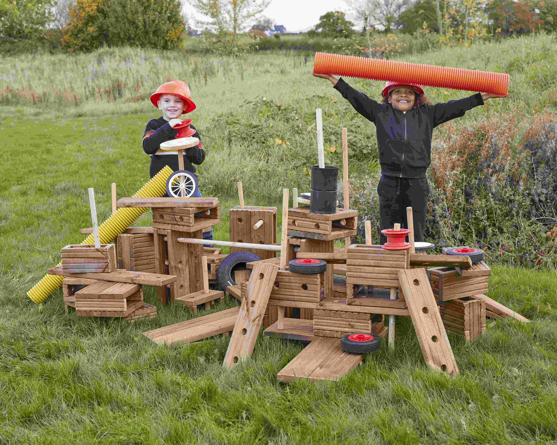 Kinder lieben es, mit Outdoor Holzbausteine zu konstruieren, zu stapeln, zu balancieren und ganze Spielwelten zu erschaffen. Dabei trainieren sie spielerisch ihre Motorik, ihr räumliches Vorstellungsvermögen und lernen, Probleme kreativ zu lösen. Outdoor Holzbausteine fördern außerdem das soziale Miteinander: Gemeinsam planen, bauen, verwerfen und neu beginnen stärkt Teamfähigkeit und Kommunikation.