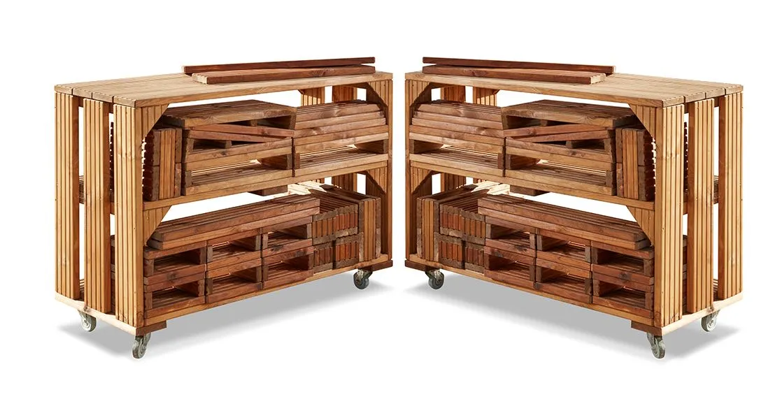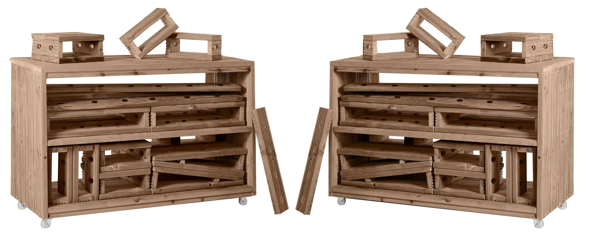 Dank witterungsbeständigem Design ist das Großes Baustein Komplettset sowohl für drinnen als auch für draußen geeignet. Die Wagen mit ihren robusten Rädern lassen sich mühelos von einer Ecke des Gartens zur anderen schieben und passen ebenso gut unter ein Vordach oder in den Geräteschuppen. So bleibt alles ordentlich verstaut, aber dennoch mobil und flexibel einsetzbar. Ob im Kindergarten, in der Schuleingangsphase oder im heimischen Garten – das Großes Baustein Komplettset ist die ideale Grundlage, um Grobmotorik, Fantasie, Selbstvertrauen und frühe ingenieurwissenschaftliche Kompetenzen spielerisch zu fördern.