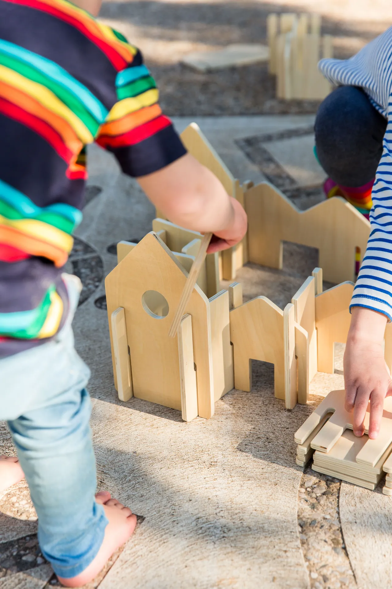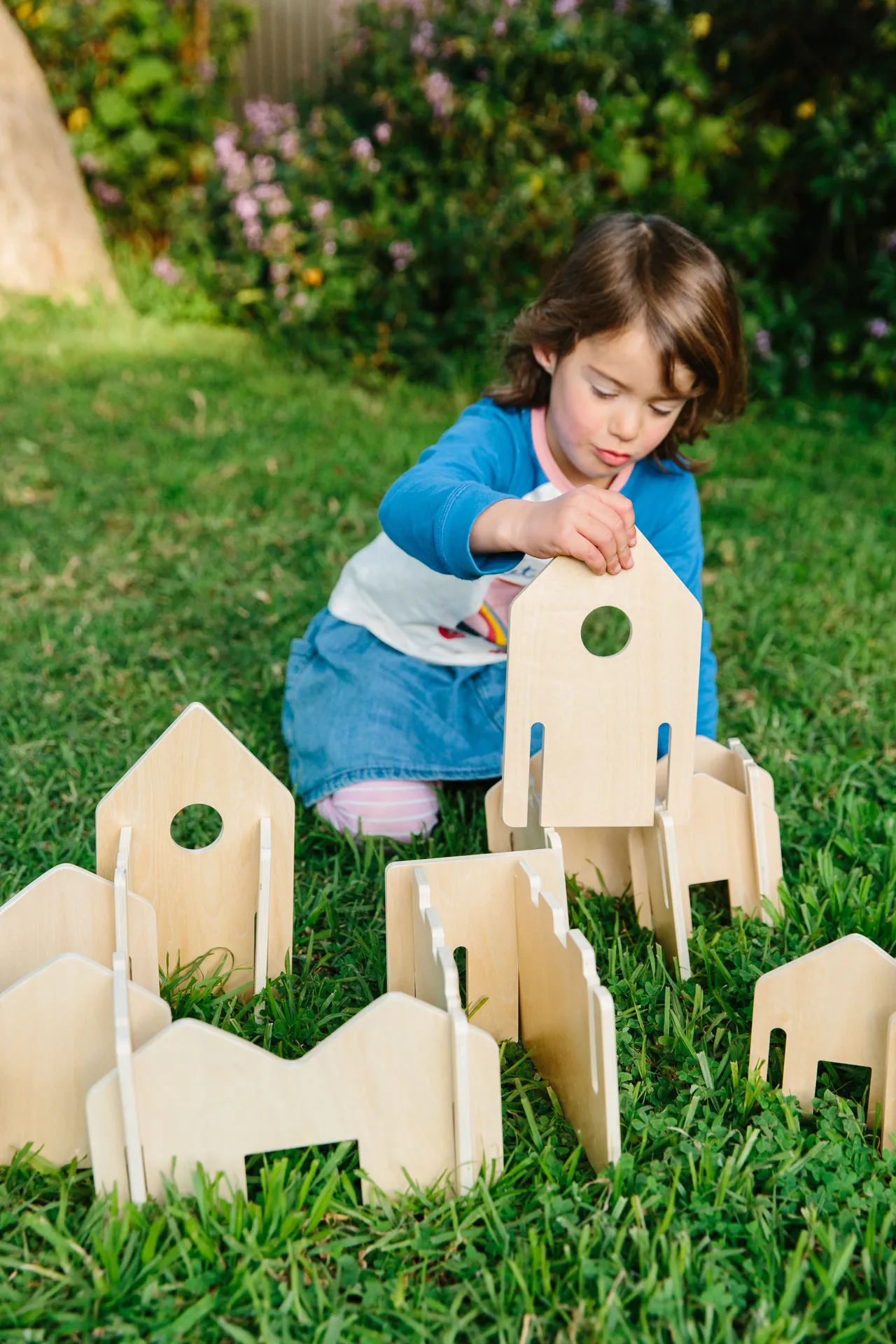 Kinder ab drei Jahren besitzen ausreichend motorische Fähigkeiten zum Halten und Stecken der Einzelteile. Die Fantasie wird durch Fassaden mit runden und eckigen Fenstern, Zäune und ausgesägte Dachgiebel in allen erdenklichen Richtungen angeregt. Der Erfolg lädt dazu ein, die Kreativität immer wieder neu auszuprobieren.