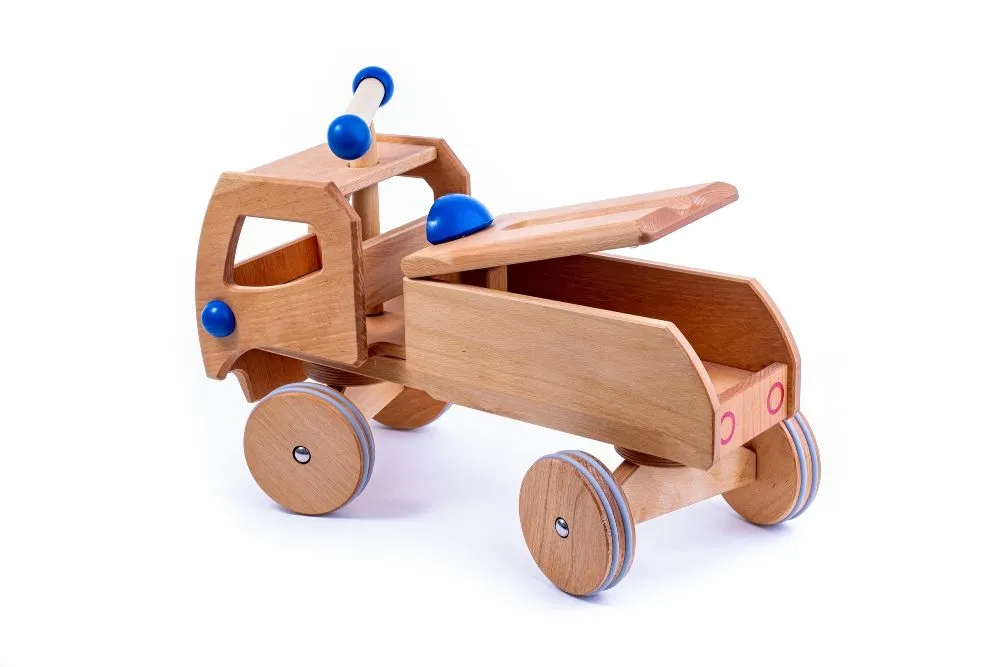 Hergestellt in Deutschland und mit nachhaltigen Materialien aus regionaler Produktion, ist dieses Holzauto sowohl ein Beitrag zum Umweltschutz als auch ein verlässliches Spielzeug für die Kleinsten.