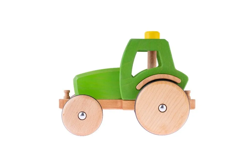 Hergestellt in Deutschland und entwickelt für den täglichen Gebrauch, eignet sich der Holz Traktor sowohl für den Innenbereich als auch für den trockenen Außenbereich. Er wird nahezu ausschließlich aus Buche gefertigt und verwendet Holz aus nachhaltiger Forstwirtschaft. Alle Oberflächen und Farben sind konform mit DIN EN 71, was den Holz Traktor zu einem sicheren und umweltfreundlichen Spielzeug macht!