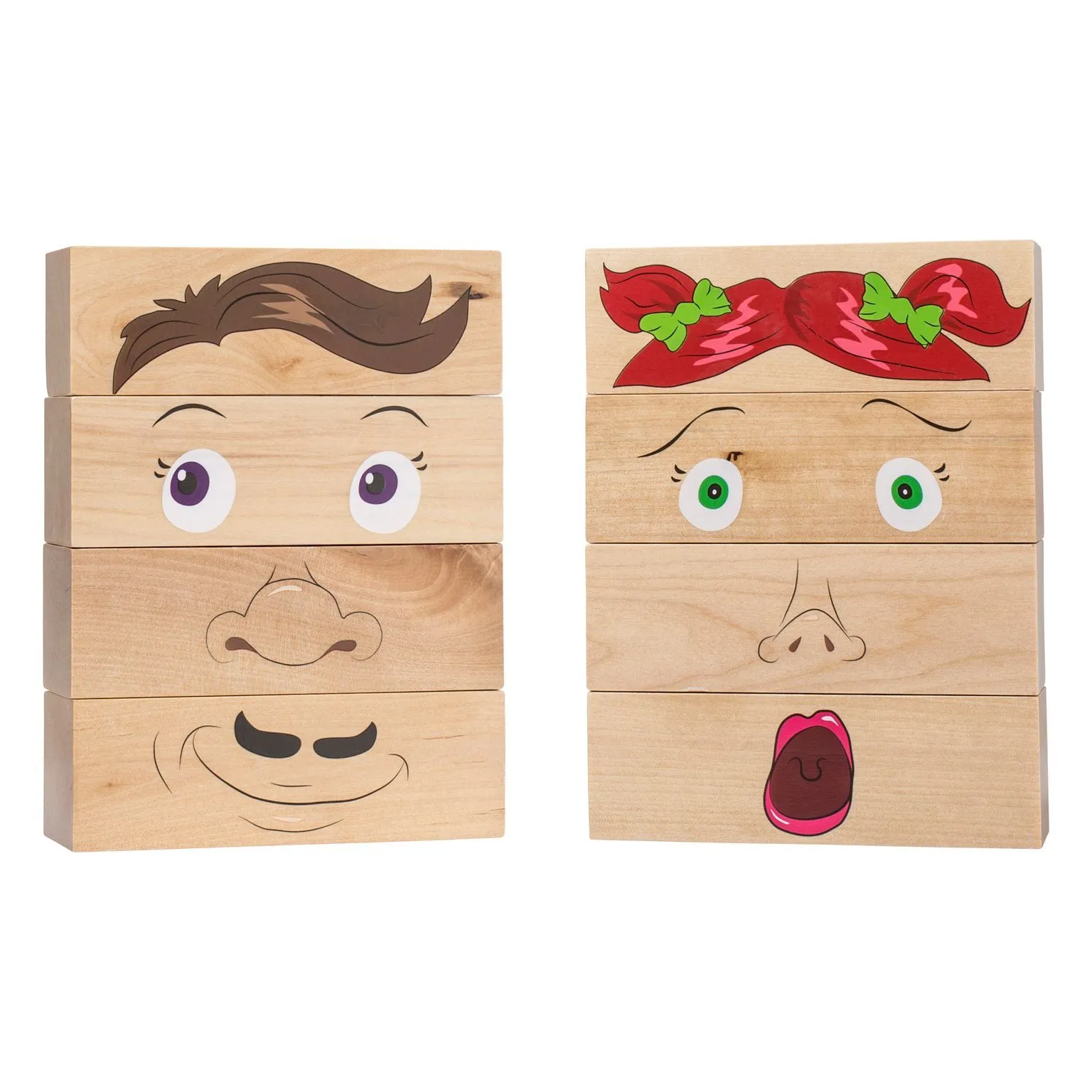 stapelbaren Holzgesichter sorgen dabei für Spaß und Leichtigkeit beim Lernen.