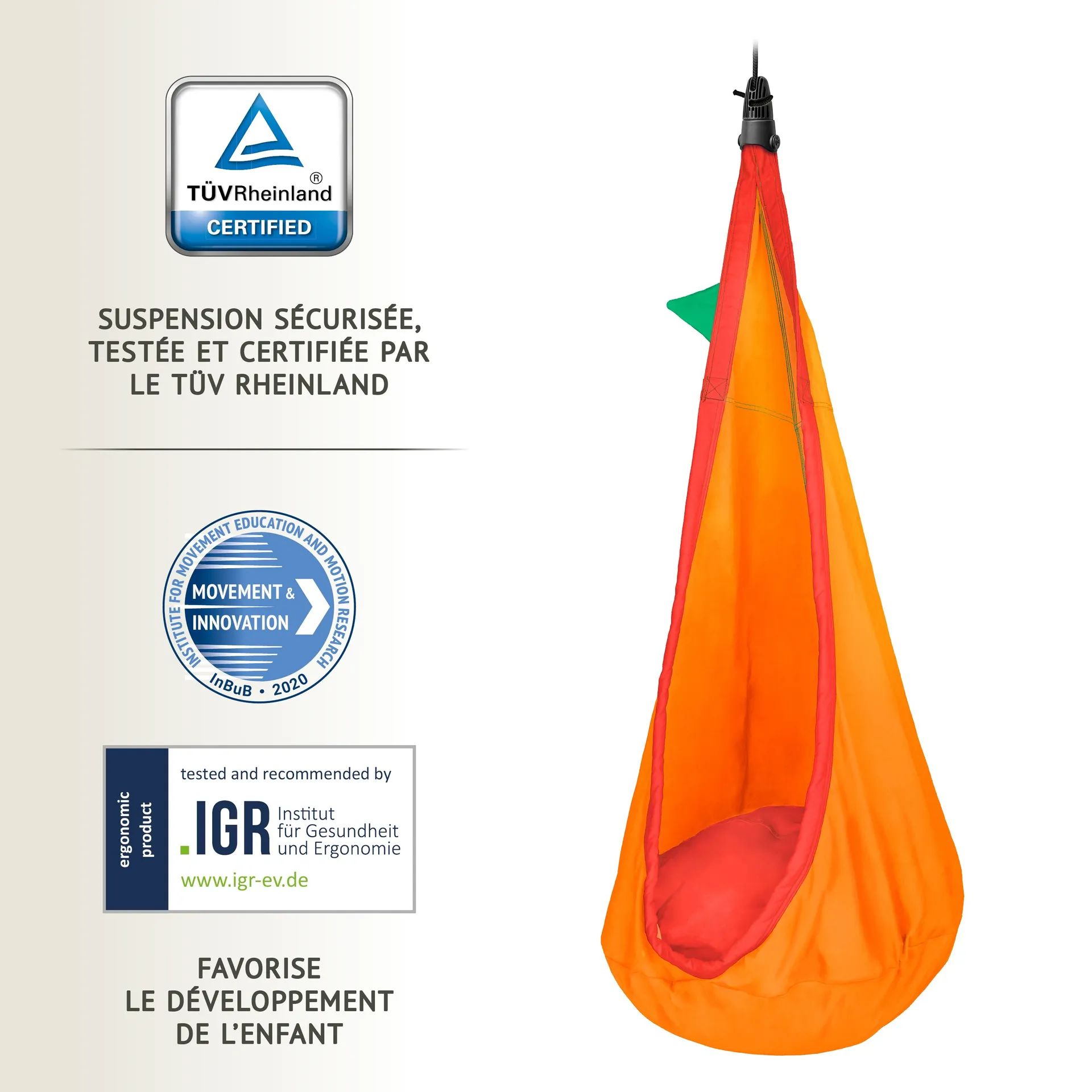 Ein herausragendes Merkmal der La Siesta Hängehöhle ist der gepolsterte Rand, der nicht nur den Komfort erhöht, sondern auch Abnutzung vermindert. Dies verspricht Langlebigkeit, sodass Ihr Kind über viele Jahre Freude an seiner La Siesta Hängehöhle haben kann. Sicherheit steht bei dem Design im Vordergrund, weshalb der Sicherheitswirbel das Eindrehen der Hängehöhle verhindert. Dies trägt nicht nur zur Sicherheit bei, sondern schont auch das Material.