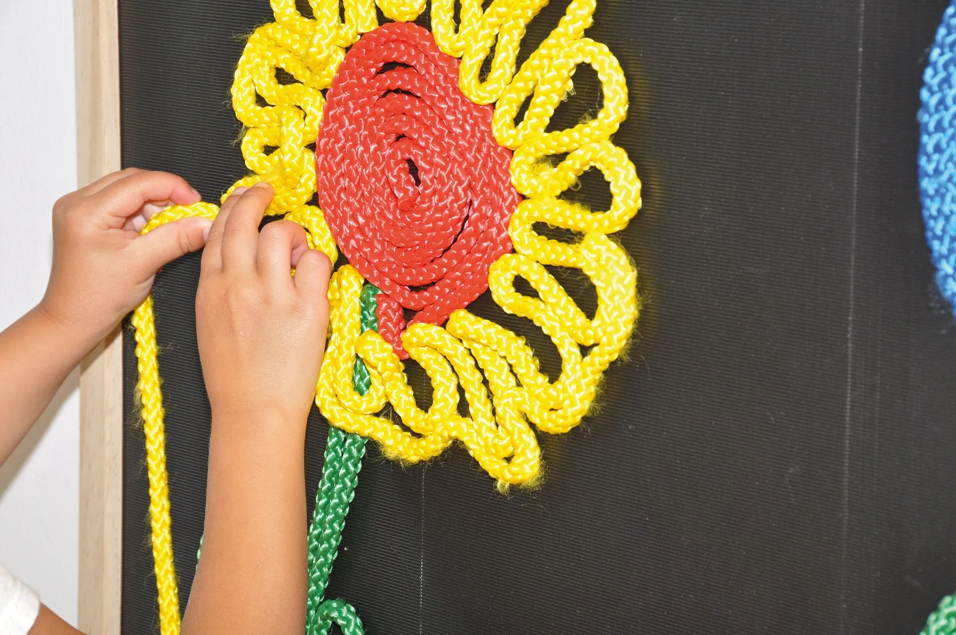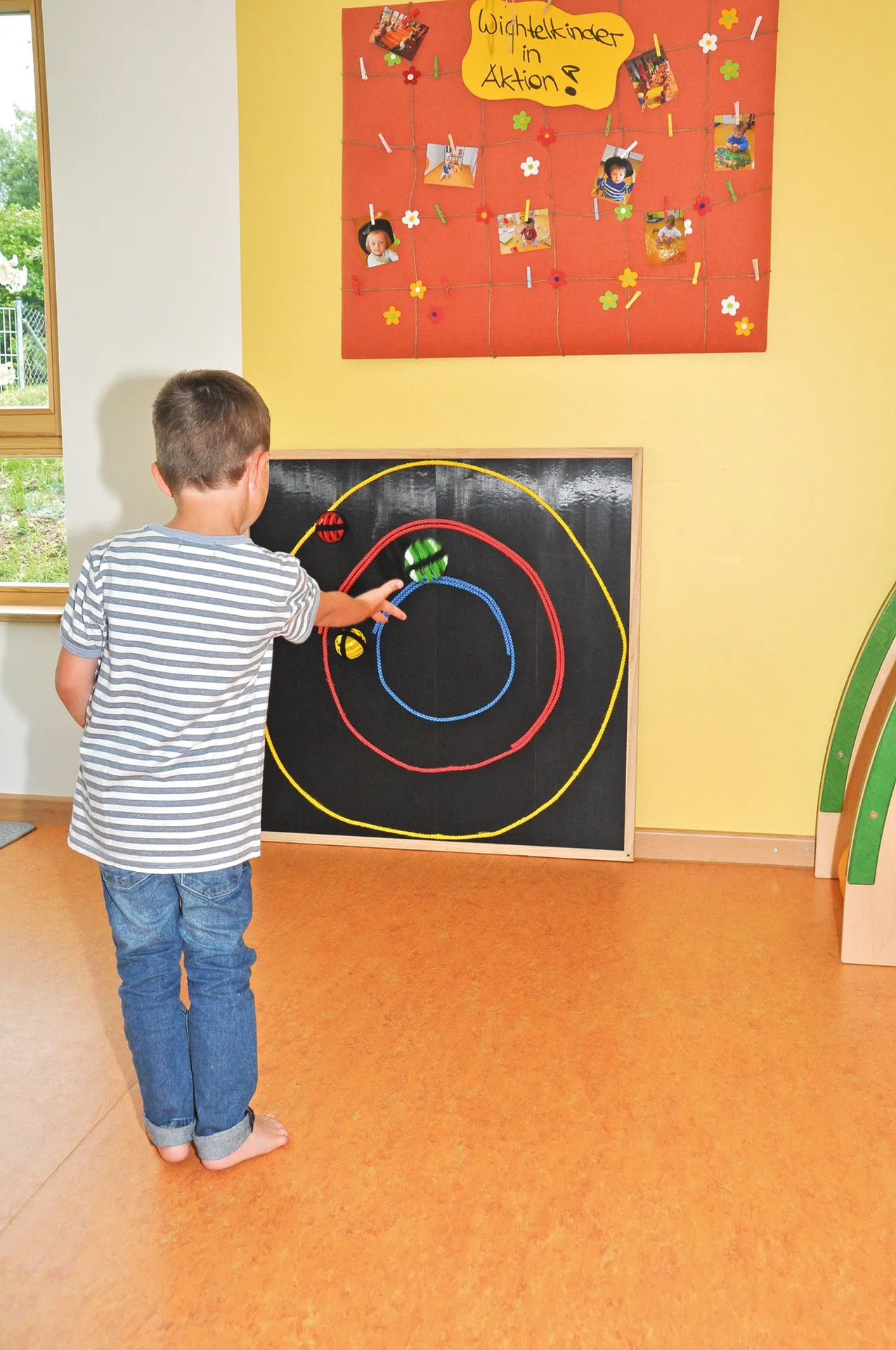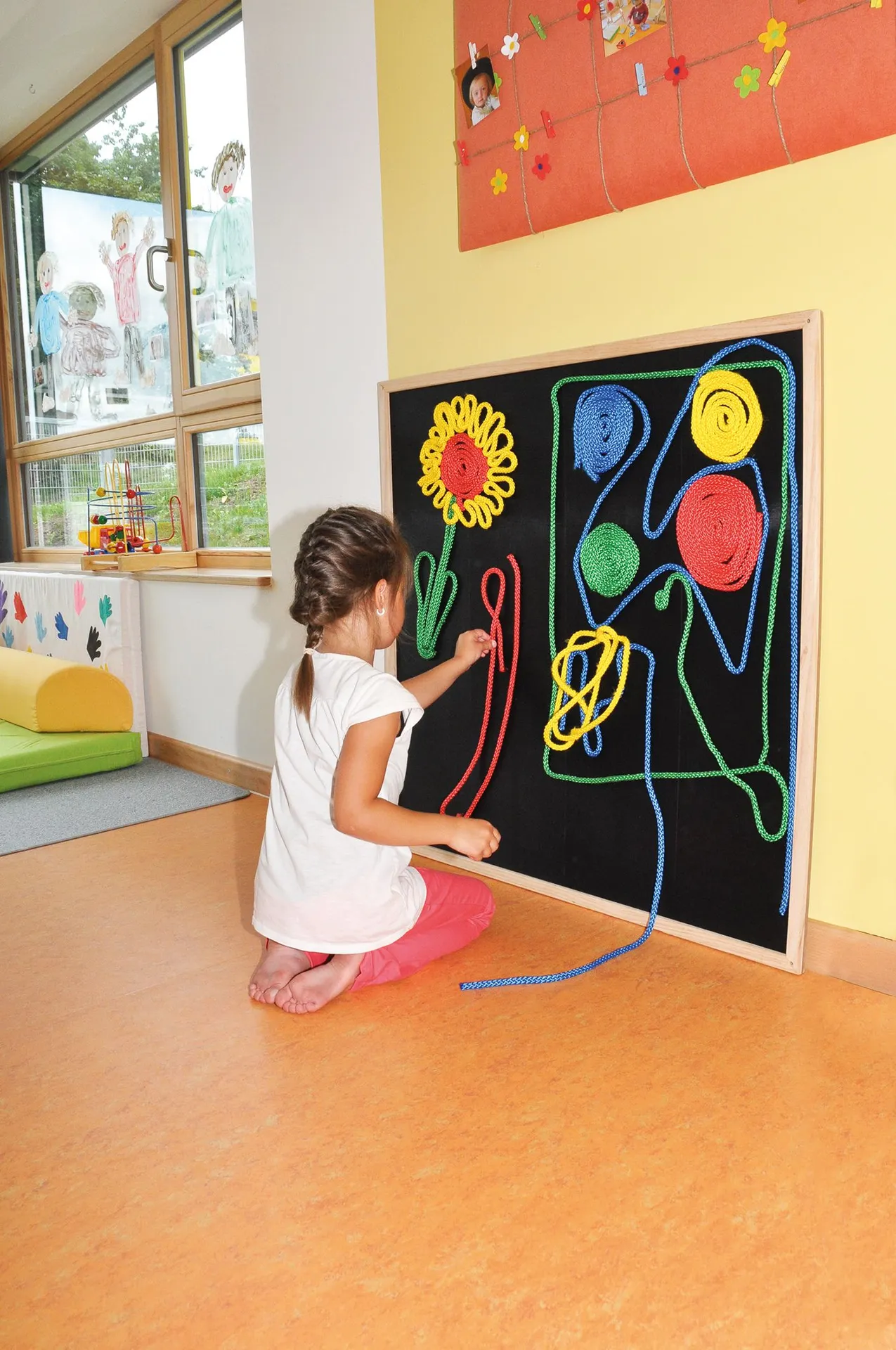 Mit seinen Maßen von 100 x 100 cm findet das Klettboard leicht Platz in Krippen, Kindergärten oder dem heimischen Kinderzimmer. Aus stabilem Holz gefertigt, bleibt die Klettfläche immer perfekt gespannt. Somit lassen sich die Nylonfäden einfach an der Kunststofffläche befestigen. Und warum nicht mehrere Boards nebeneinander montieren? So können die Kinder gemeinsam an Motiven arbeiten und ihrer Kreativität freien Lauf lassen – von detailgetreuen Eisenbahnen bis zu bunten Schlangen ist alles möglich.