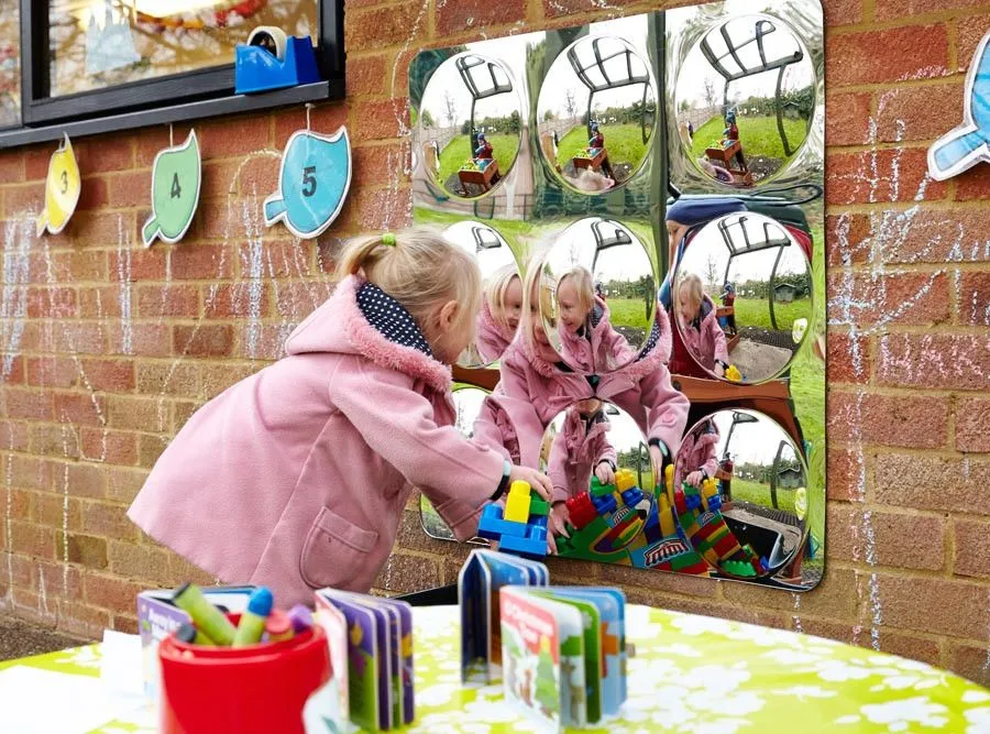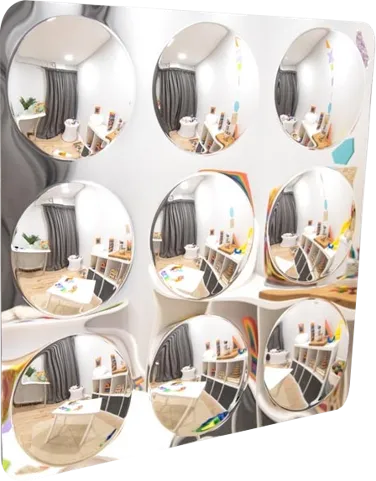 Optische Reize sind für Kinder in jungen Jahren nicht nur interessant, sondern auch wichtig. Für eine ganz neue Wahrnehmung bietet Jubee den Kuppelspiegel an. Er ist durch seine insgesamt 9 Spiegel faszinierend und zeigt ein ganz neues Bild der Umgebung.