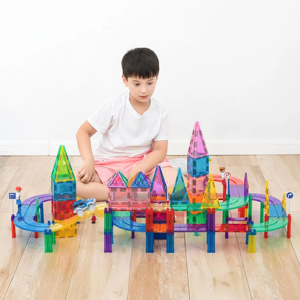 Die Magnet Rennbahn von Jubee ist das perfekte Set für kleine Ingenieure und kreative Köpfe. Mit der Magnet Rennbahn können Kinder ihre eigene, individuelle Rennstrecke gestalten und ihrer Fantasie freien Lauf lassen. Das Set beinhaltet Pfeiler, Brücken, rechteckige Platten, Kurven, Wellenbahnen und dreieckige Magnetplatten, mit denen sich unzählige Streckenkombinationen kreieren lassen.