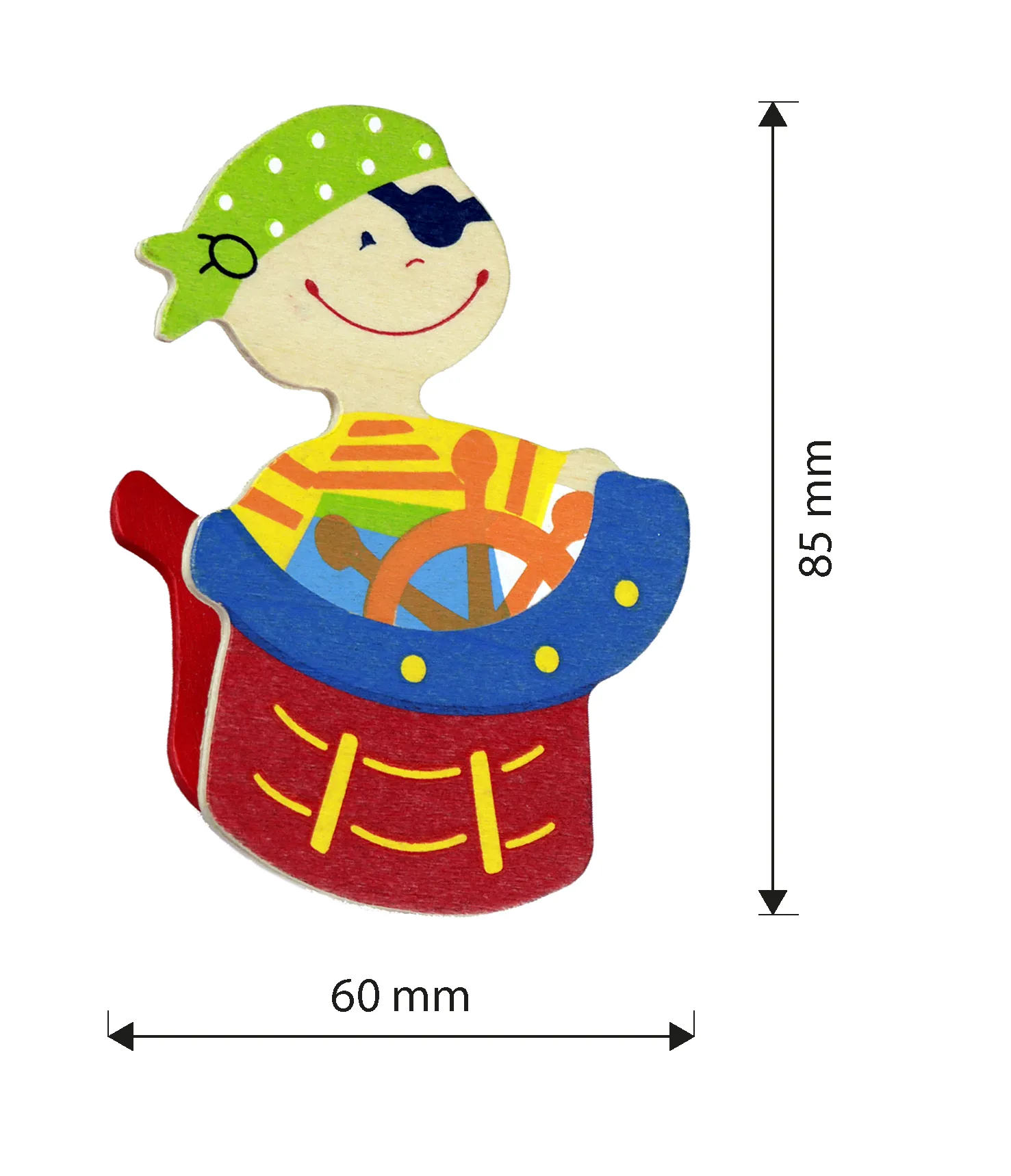 Die Motive bestehen aus Holz und sind auf der Rückseite mit einem starken Magneten ausgestattet. Das Design überzeugt in jeder Hinsicht: Die Meerjungfrau lässt Mädchenherzen höherschlagen, der Pirat weckt die Abenteuerlust der Jungs. Eine schöne Ergänzung für das Kinderzimmer, die Gruppe oder den Flur, die gute Laune macht, finden Sie nicht auch? Ganz nebenbei wird auf Kunststoff verzichtet, was die Magnete nachhaltig und robust macht. Der Preis ist für einen Magnetclip. Keine Motivauswahl möglich.