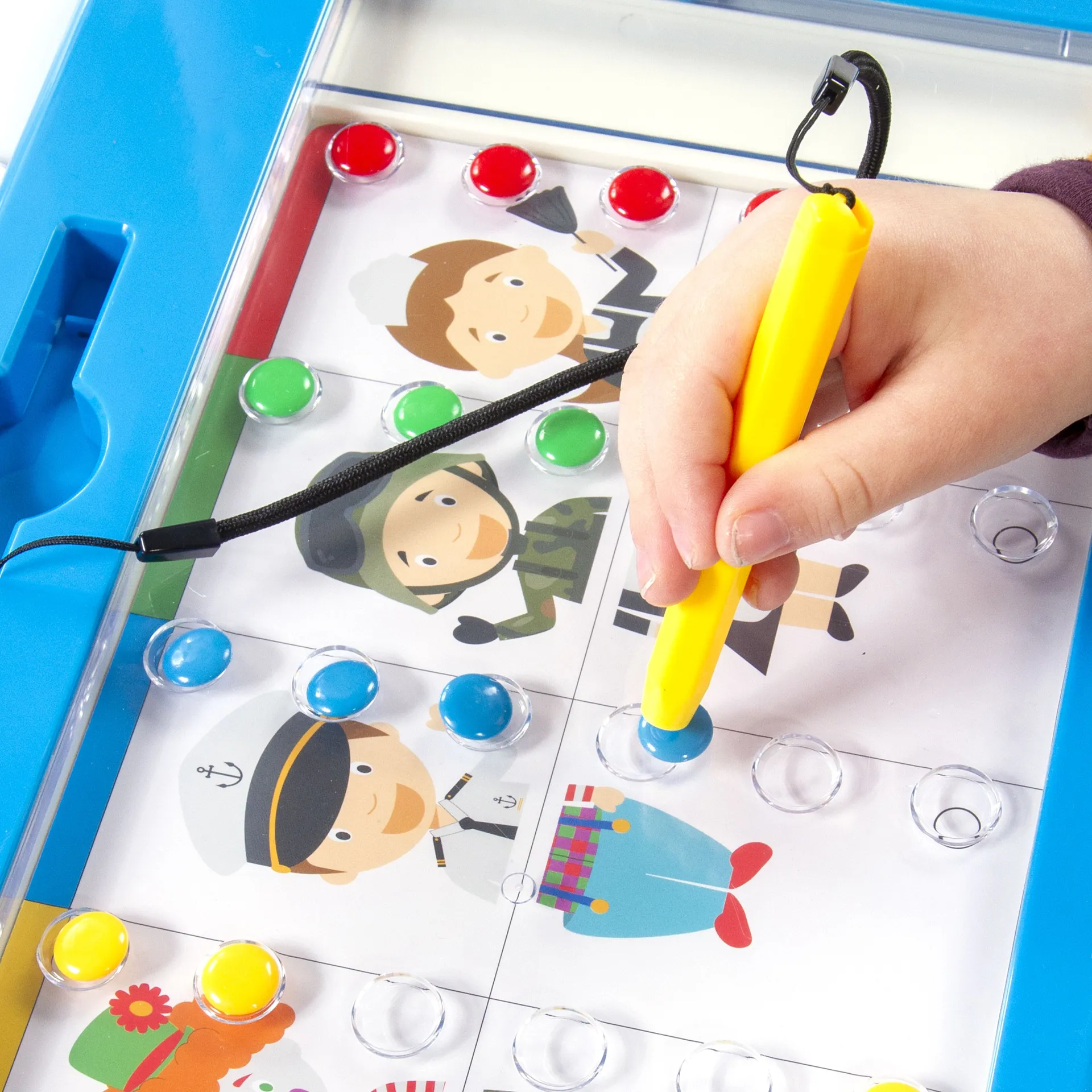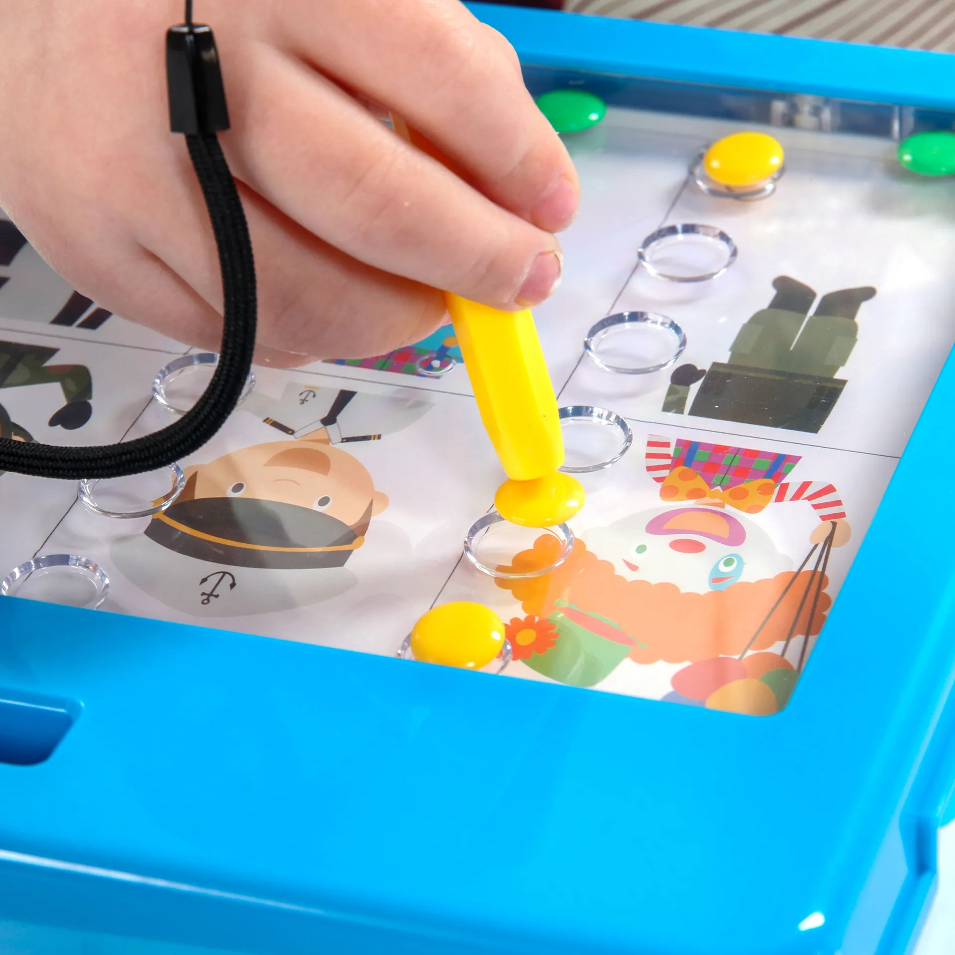 Magram ist ein unterhaltsames Spielzeug, bei dem Kinder verschiedene Aufgaben lösen und magnetische Farbchips auf die entsprechenden Lösungsfelder bewegen müssen. Der Clou ist, dass sie das Lernspiel von Jubee sowohl allein als auch in einer Gruppe spielen können.