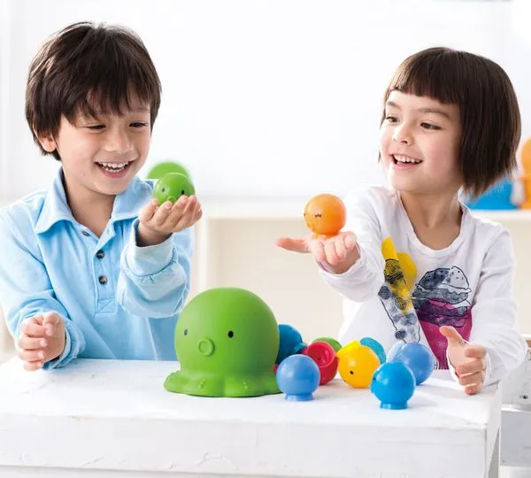 Kinder lernen über ihre Sinne, nehmen Sinnesreize auf und erkunden die Welt unter anderem durch motorische Aktivitäten. Die Mini-Oktopusse unterstützen diesen Vorgang auf spielerische Weise. Das Balancierspiel ist nicht nur schnuckelig und farbenfroh, sondern auch sehr facettenreich. Es besticht zudem durch ein tolles Design. Der Saugfuß der kleinen Gummitierchen saugt sich am großen Oktopus fest. Dadurch entstehen viele bunte Formationen. Es ist möglich, die Oktopusse auf den Händen balancieren zu lassen.