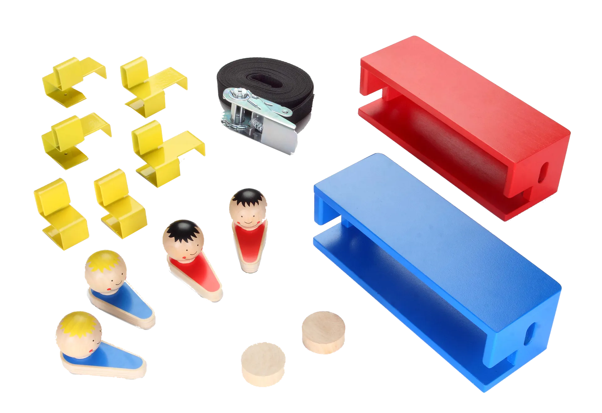 Wäre es nicht toll, einen Kicker zu haben, der sich platzsparend in der kleinsten Ecke aufbewahren lässt? MOBI KICK von Dragon Toys bietet alles, was man für ein aufregendes Match benötigt. Der Lieferumfang umfasst vier Spielfiguren, zwei Tore und zwei Spielpucks, die als Ball verwendet werden. Als Spielfeld wird ein beliebiger Tisch eingesetzt. Um Tischfußball spielen zu können, wird lediglich ein 160 x 80 cm großer Tisch mit einer Tischplatte, die zwischen 19 und 21 mm stark ist, benötigt. Dank der mitgelieferten Befestigungselemente und einem Spanngurt verwandelt sich der Tisch im Handumdrehen in eine Spielfläche, auf der nach Herzenslust gekickert werden kann.