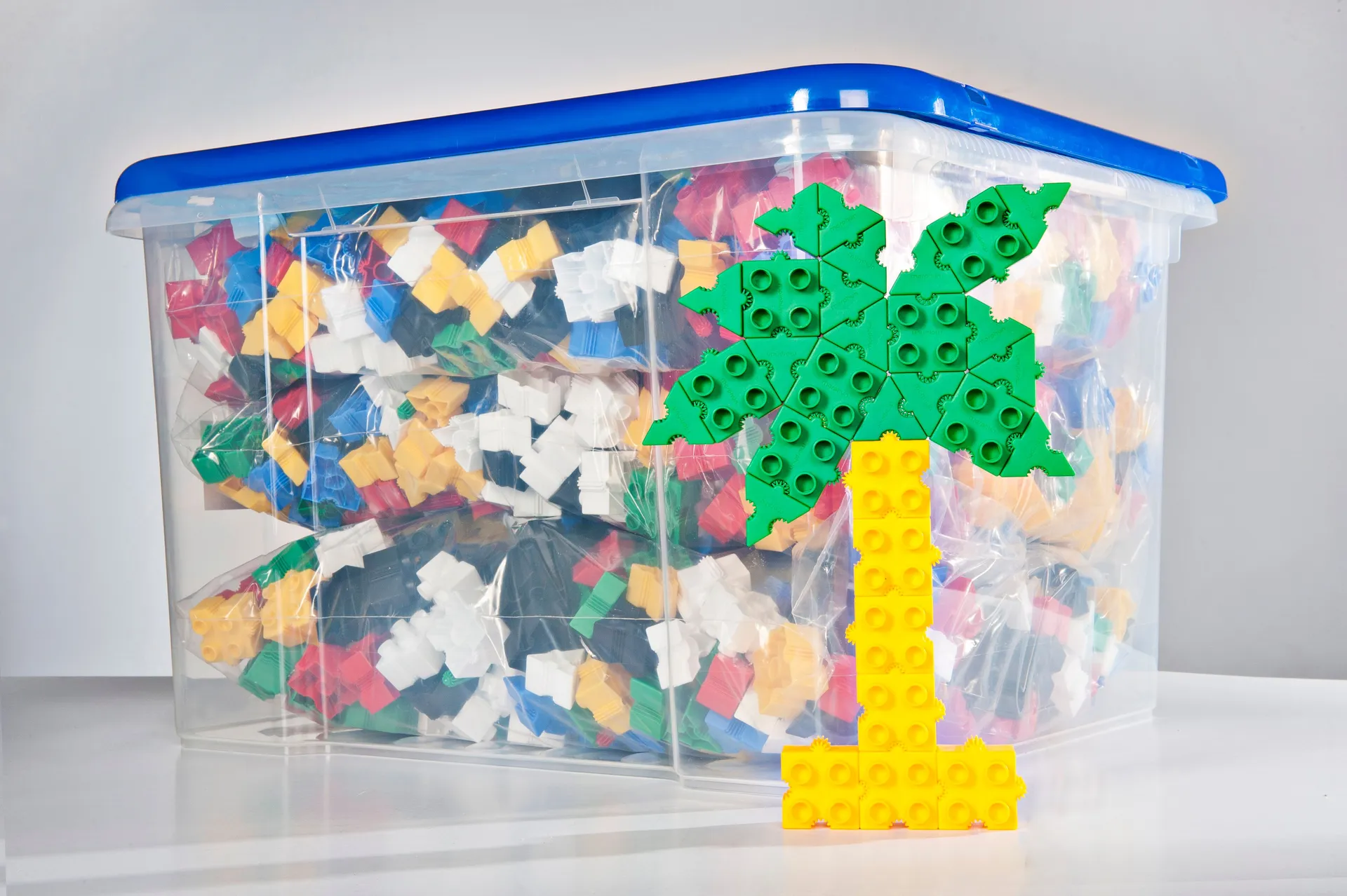 Eine große Box mit 1.650 kleinen Quadraten und Dreiecken aus Kunststoff mit seitlichen Verbindungsmöglichkeiten - es ist ein Traum, was sich daraus alles bauen lässt! Setzen Sie sich mit Ihrem Kind zusammen, lassen Sie die Welt in seinem Kopf lebendig werden und erschaffen Sie tolle Figuren und Formen wie Tiere, Bauwerke, Fahrzeuge, komplexe Statuen oder surreale Kunstwerke. Zur besonderen Inspiration liegen Anleitungen bei. Nach denen können Sie Schritt für Schritt einfache zweidimensionale sowie anspruchsvolle dreidimensionale Modelle gestalten.