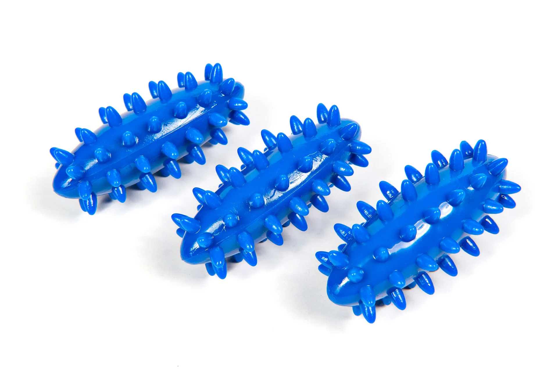 Der Massageball von Weplay ist ein oval geformter Ball, der 3,35 x 7,42 cm groß ist. Ideal für kleine Kinderhände. Mit seiner Hilfe kann es zu einer Verbesserung der Sinneswahrnehmung der Kinder kommen. Der Tastsinn wird besonders gefordert und gefördert. Dank seiner moderaten Weichheit und Form, erhöhen Kinder die Geschicklichkeit ihrer Finger.