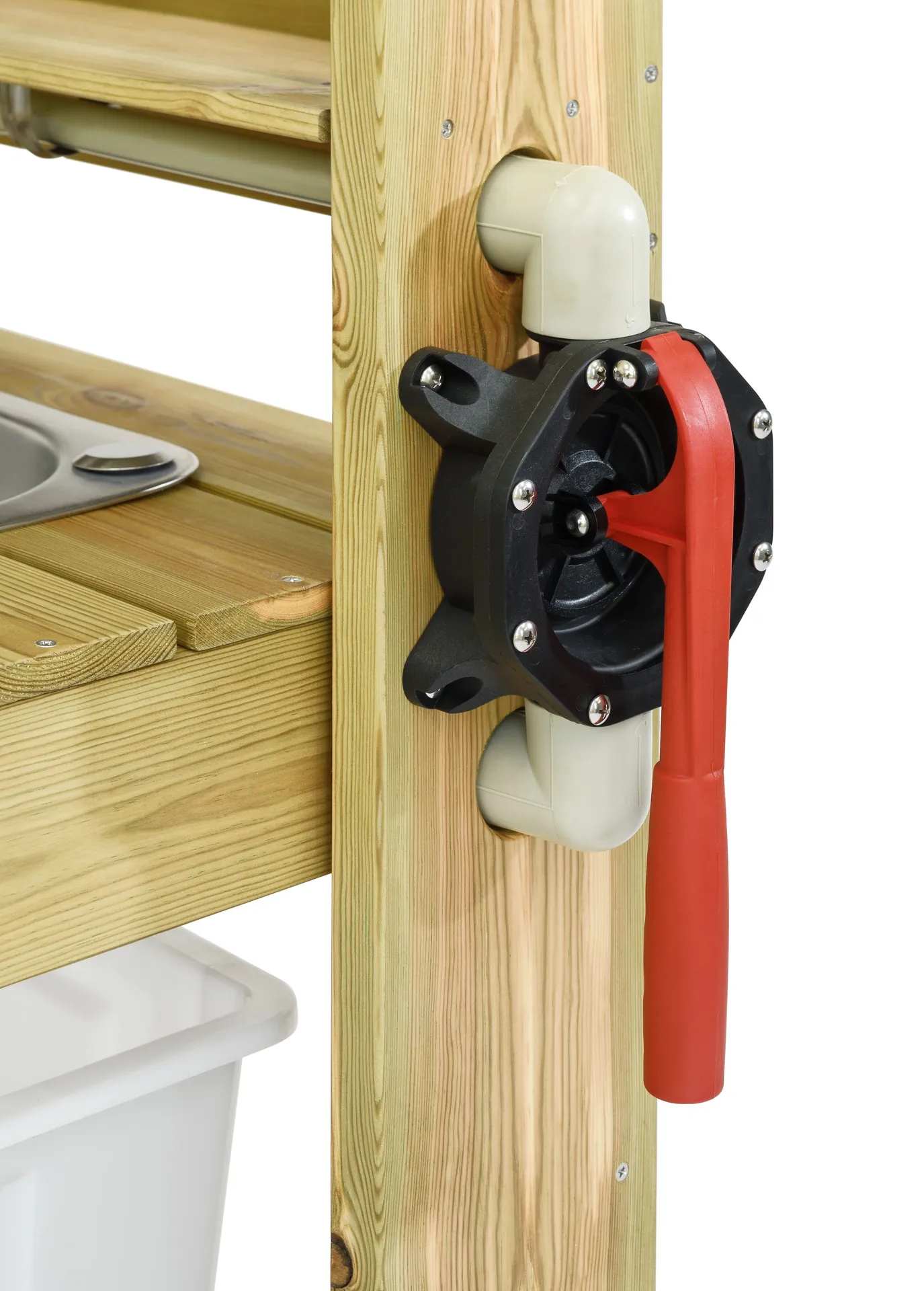 Die Jubee Outdoor-Küchenspüle für Kinder verbindet Spaß mit Lernmöglichkeiten. Dieses hochwertige Spielgerät ist aus robustem Kiefernholz gefertigt, das aus den nachhaltigen Wäldern Finnlands stammt. Mit seiner langlebigen und umweltfreundlichen Konstruktion bietet die Spüle eine dauerhafte Freude an der frischen Luft. Perfekt geeignet für kleine Naturforscher, um ihre Kreativität zu entfalten.