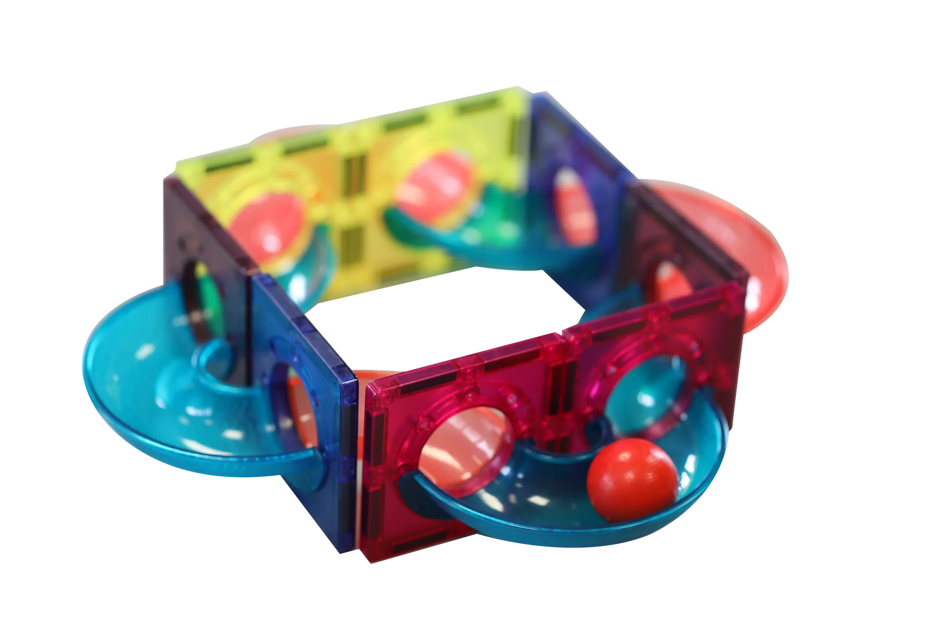 Neben dem Kinderzimmer kann die Bahn auch gut in der Krippe oder im Kindergarten zum Einsatz kommen. Ferner kann sie in Therapie- oder in Pflegeeinrichtungen gute Dienste leisten. Die Teile sind aus robustem Kunststoff gefertigt, sodass sie auch bei regelmäßiger Beanspruchung nicht so schnell kaputtgehen können. Da bei jedem Aufbau fast immer eine neue Variante entsteht, stellt sich am Ende stets die Frage, ob die Kugel gut durchkommen wird und das System funktioniert. Wenn nicht, müssen die Erbauer nachbessern, bis alles läuft. Das fördert das logische Denken, und durch das exakte Zusammensetzen der Teile werden die motorischen Fähigkeiten geschult.