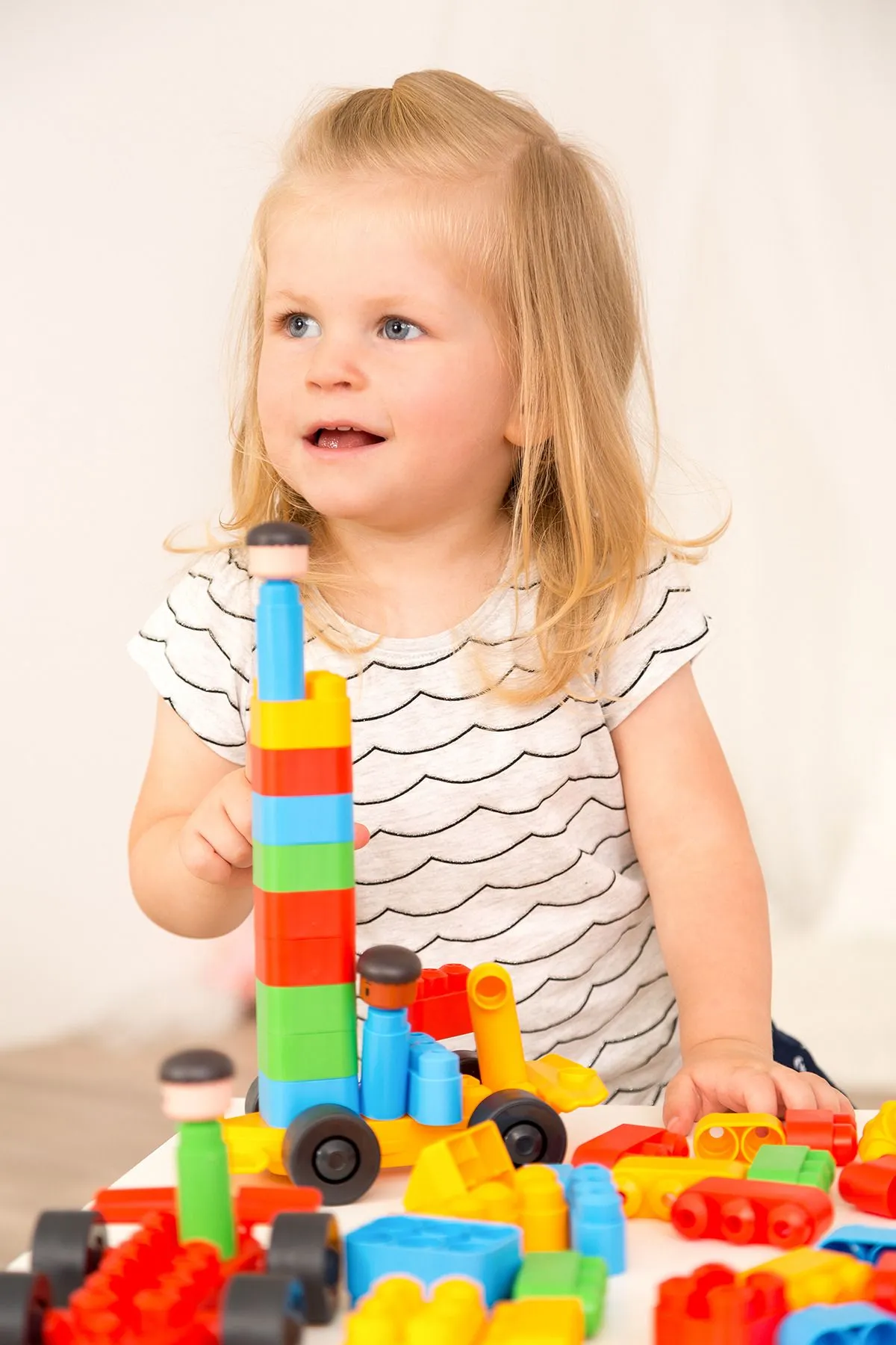 Ein Highlight des Poly-M Freispielsets sind die zwölf vormontierten Autos, die den Kindern Raum für kreatives Gestalten bieten. Diese Autos können individuell gestaltet und mit anderen Bausteinen kombiniert werden, um aufregende Rennstrecken und Abenteuerwelten zu erschaffen. Die robusten Teile sind speziell auf die Bedürfnisse kleiner Hände abgestimmt und fördern spielerisch die Hand-Auge-Koordination.