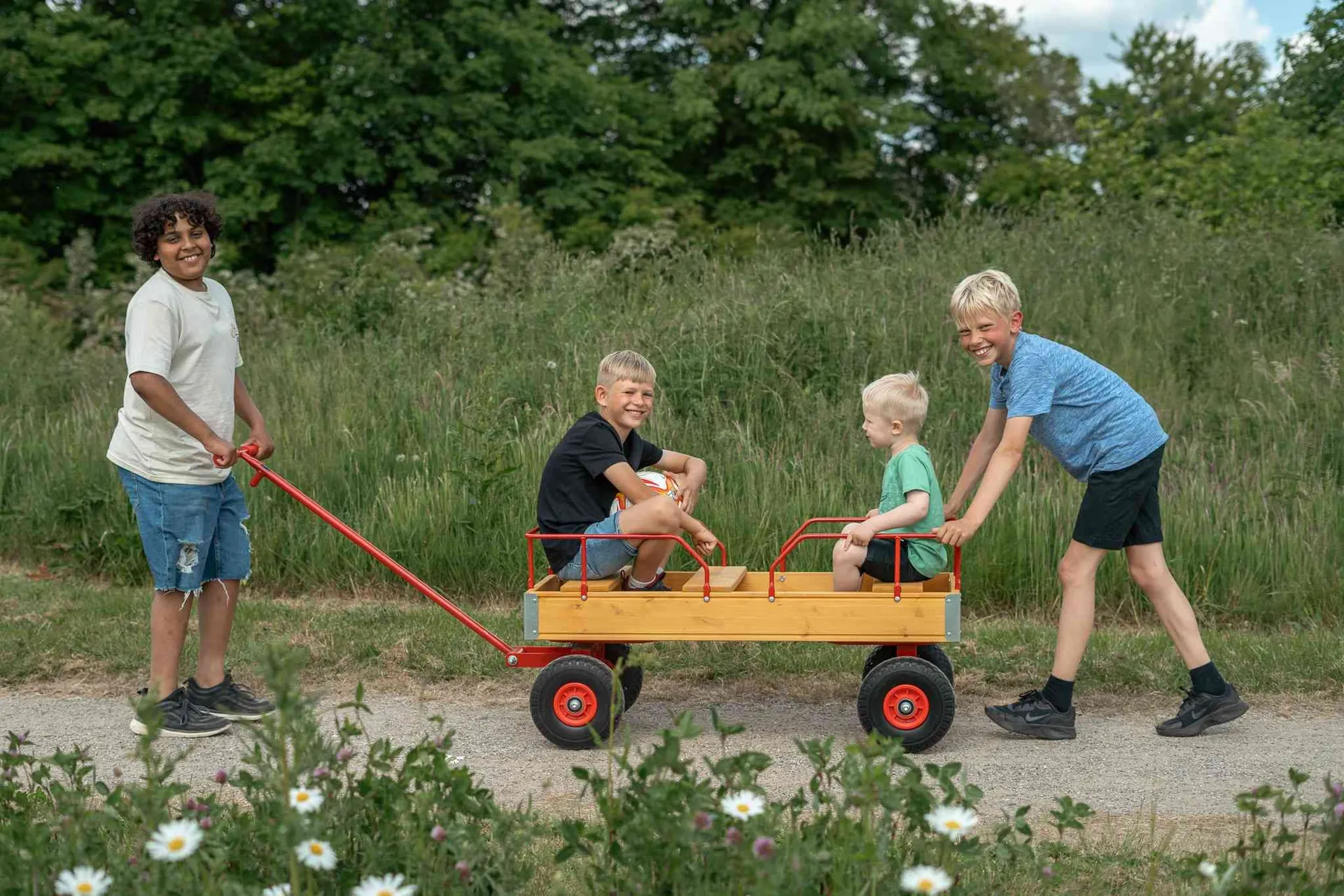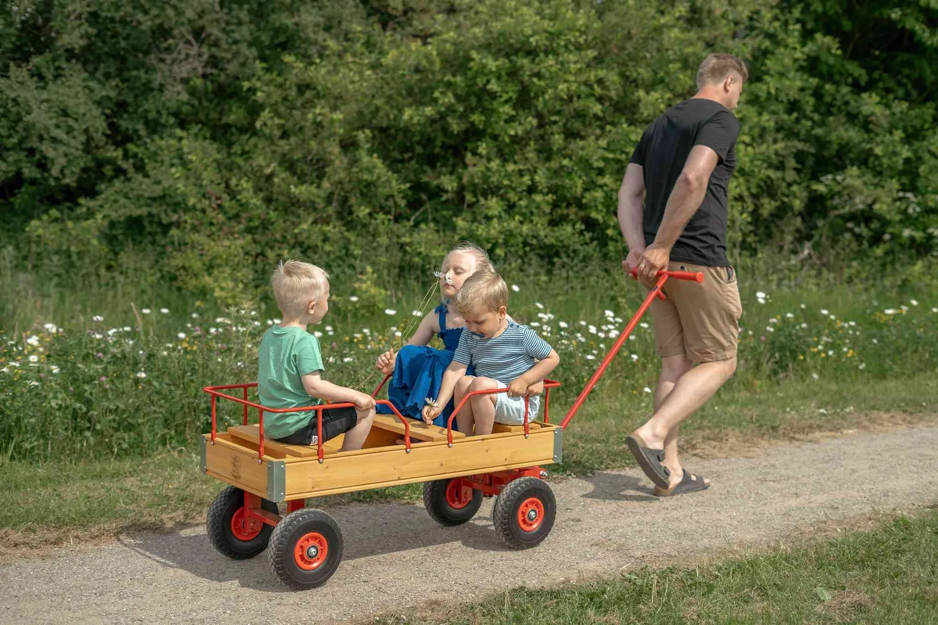 Der Bollerwagen XL mit Ballonreifen ist mehr als nur ein Transportmittel. Er kann auch als unterhaltsamer Bestandteil eines jeden Ausflugs dienen, indem er Kindern eine neue Möglichkeit der Fortbewegung bietet. Der Wagen wird komplett montiert geliefert und kann sofort eingesetzt werden. Mit einer Garantie von 5 Jahren auf den Korpus und 2 Jahren auf Materialien außer Verschleißteilen überzeugt der Wagen durch seine Langlebigkeit und Qualität.