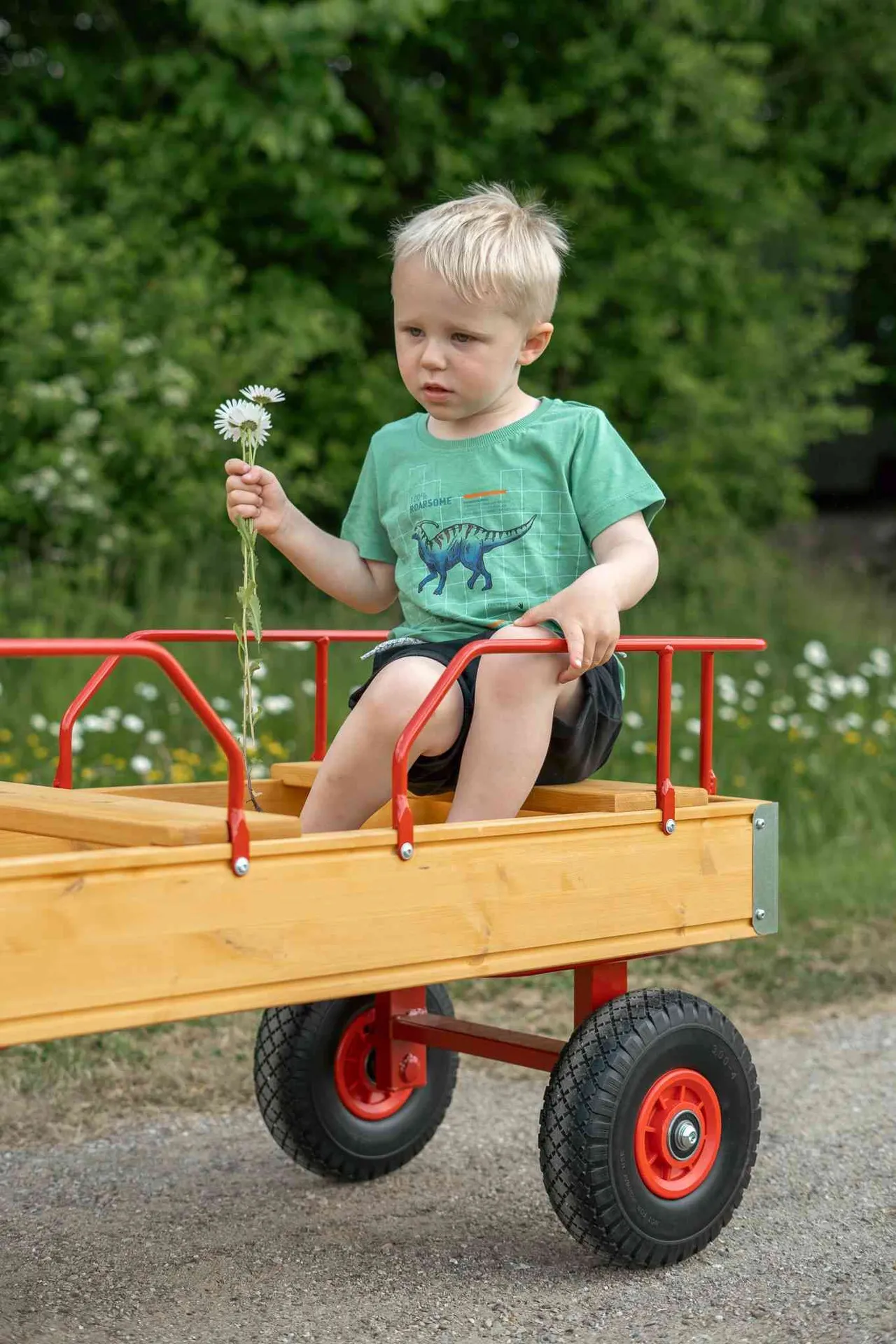 Der ROSE Bollerwagen XL mit Ballonreifen von Jubee ist ein ausgezeichnetes Transportmittel für viele Gelegenheiten. Ob in Kindergärten, Schulen oder auf Spielplätzen, dieser Wagen bietet eine sichere und bequeme Möglichkeit, Kinder zu transportieren. Ausgestattet mit drei Bänken und Handläufen, bietet der Bollerwagen XL mit Ballonreifen viel Platz und Komfort für die Kleinen. Die vier Ballonreifen sorgen für eine sanfte Fahrt, selbst auf unebenem Gelände, und machen den Wagen ideal für den Einsatz im Wald, im Park oder auf Campingplätzen.