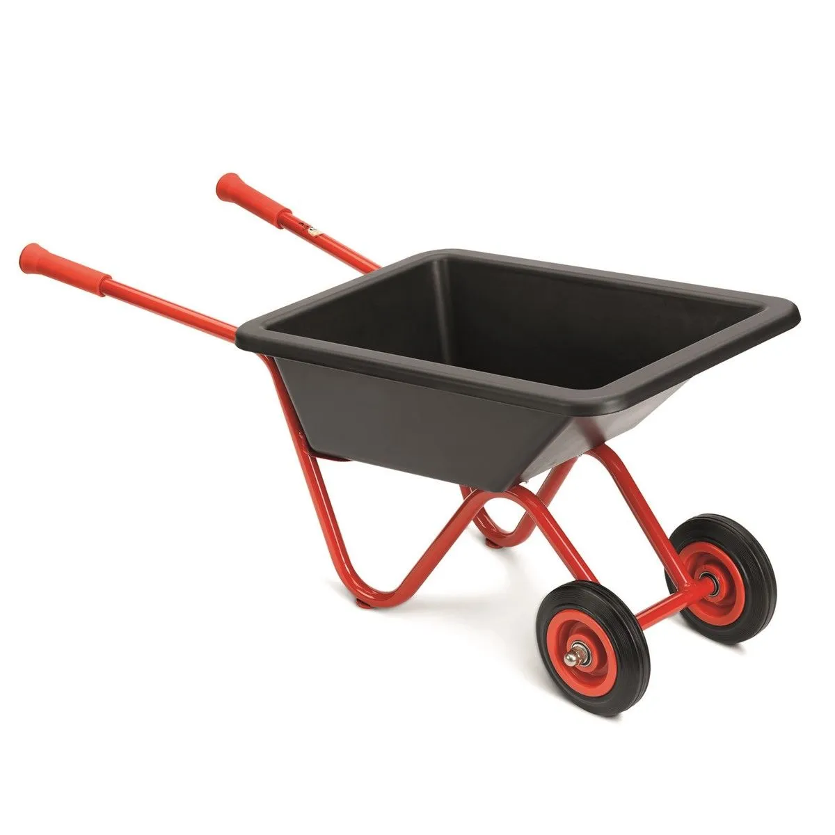 Die ROSE-Schubkarre ist mit zwei Vollreifen, einer Kunststoffbox und Gummigriffen an den Griffen ausgestattet, damit sich kleine Hände leicht bewegen können. Zweirädrige Schubkarren sind aufgrund der zwei Räder generell deutlich stabiler. Mit dieser Schubkarre können sich die Kleinen richtig bewegen und beim Schieben ihre motorischen Fähigkeiten trainieren.