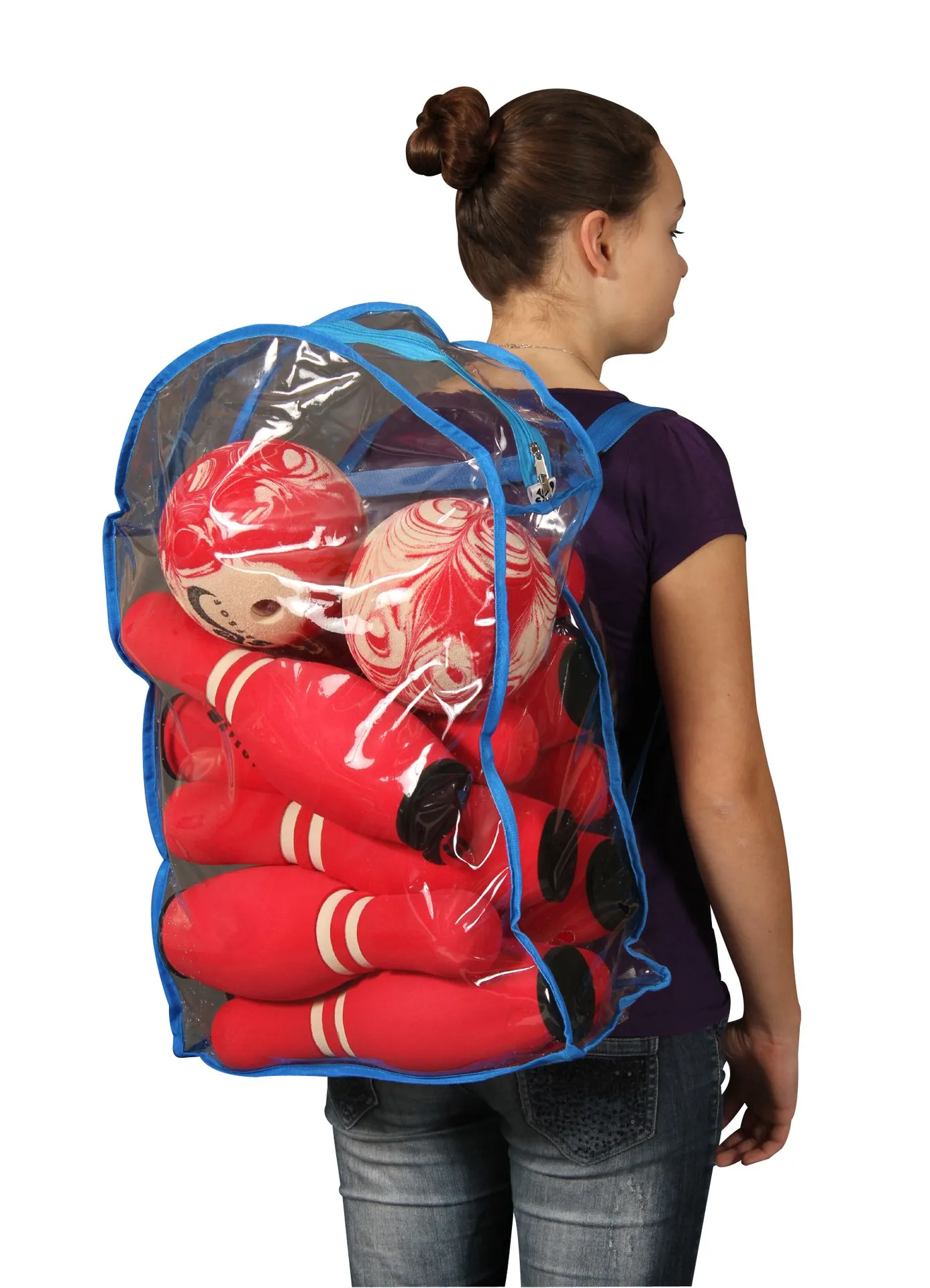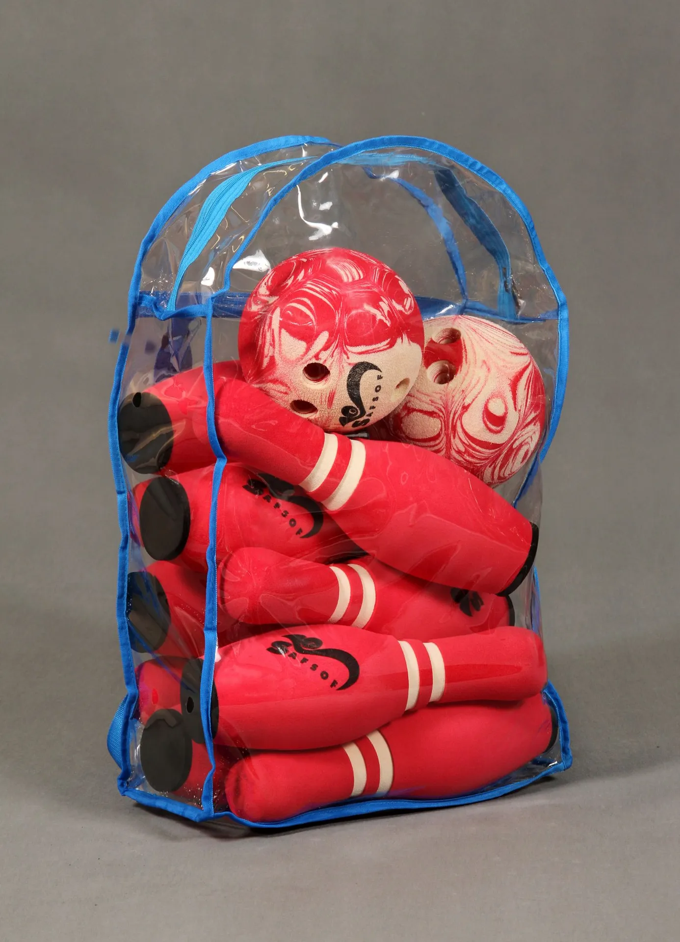 Bowling entstand im 19. Jahrhundert in den Vereinigten Staaten von Amerika. Damals gab es ein Kegelverbot in Connecticut. Um die Beschränkung zu umgehen, wurden aus neun Kegeln zehn Pins. Gespielt wird das Softbowling, wie auch das amerikanische Original, mit einem Bowlingball. Die Softbowling-Kugel hat drei Löcher - für den Daumen, Mittel- und Zeigefinger. Der Ball besteht, wie das restliche Softbowling-Set auch, aus weichem EVA-Schaum. Die zwölfteilige rote Softbowling-Ausrüstung ist sowohl im Innen- als auch im Außenbereich verwendbar. Durch das weiche, aber robuste Material schützt es besonders kleinere Kinder vor Verletzungen. Aufgrund der Materialauswahl ist softes Bowlen möglich.