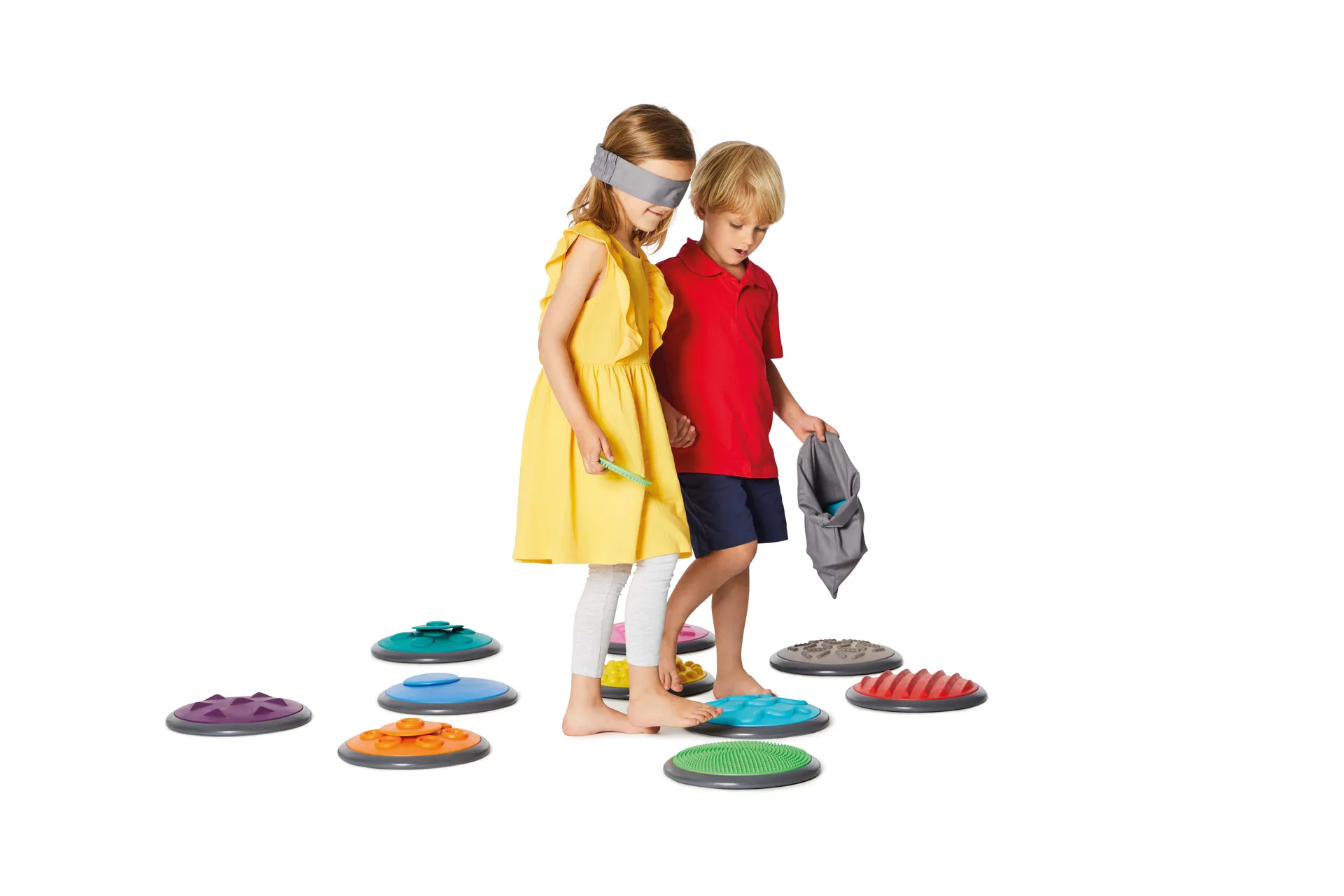 Die taktilen Scheiben im 20-teiligen Set können für Groß und Klein eine wunderbare Abwechslung sein, fördern Tastsinn, Balance, Merkfähigkeit auf spielerische Weise und eignen sich daher für zahlreiche Bereiche.
