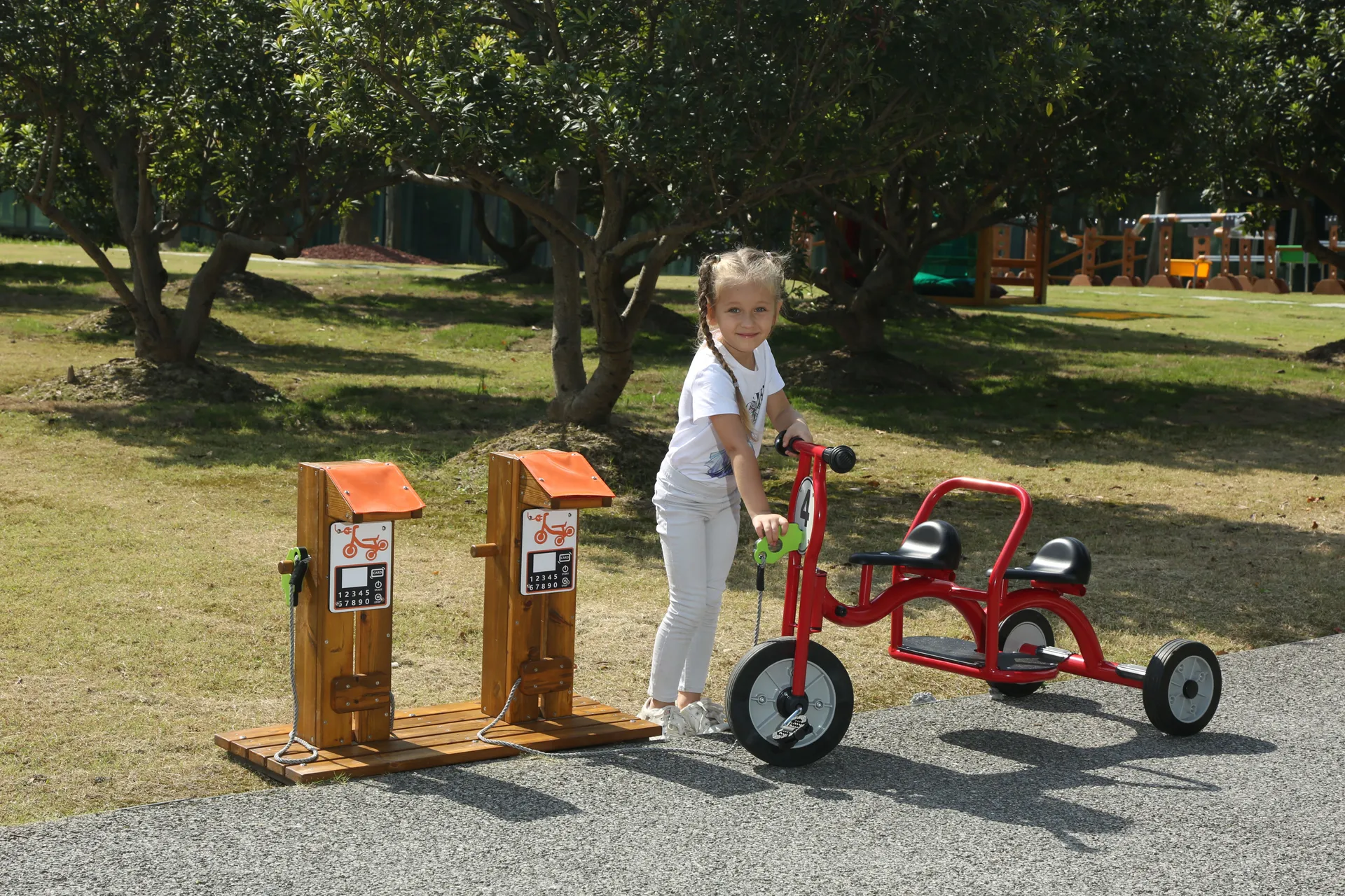An dieser wunderschön gestalteten Outdoor-Tankstelle aus nachhaltigem Holzanbau lassen sich alle Kinderfahrzeuge wie Rutschauto, Roller, Laufrad oder Dreirad schnell wieder aufladen und die Reise kann weitergehen.