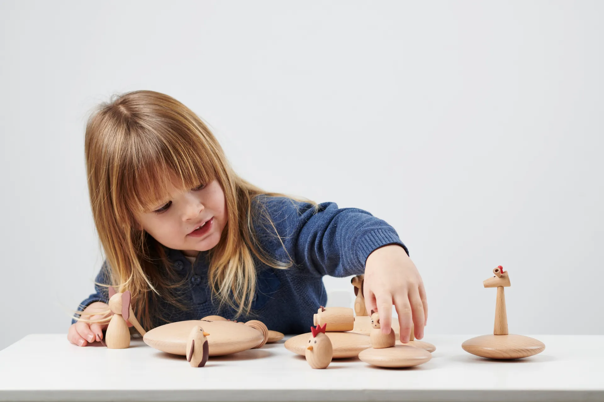 Jedes Tier der Sammlung besticht durch seine schlicht aufgedruckten Merkmale und die raffinierten Kunstleder-Details, die Individualität und Charme verleihen. Diese kleinen Kunstwerke sind nicht nur Spielzeuge, sondern auch pädagogische Hilfsmittel, die motorische Fähigkeiten, Weltverständnis und kreatives Spiel anregen. Von der Eule bis zum Elefanten, jedes Tier lädt dazu ein, Geschichten zu erzählen, Rollenspiele zu gestalten und die Fantasie zu entfalten.