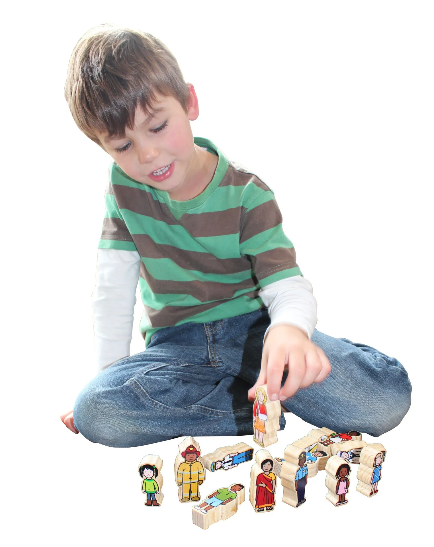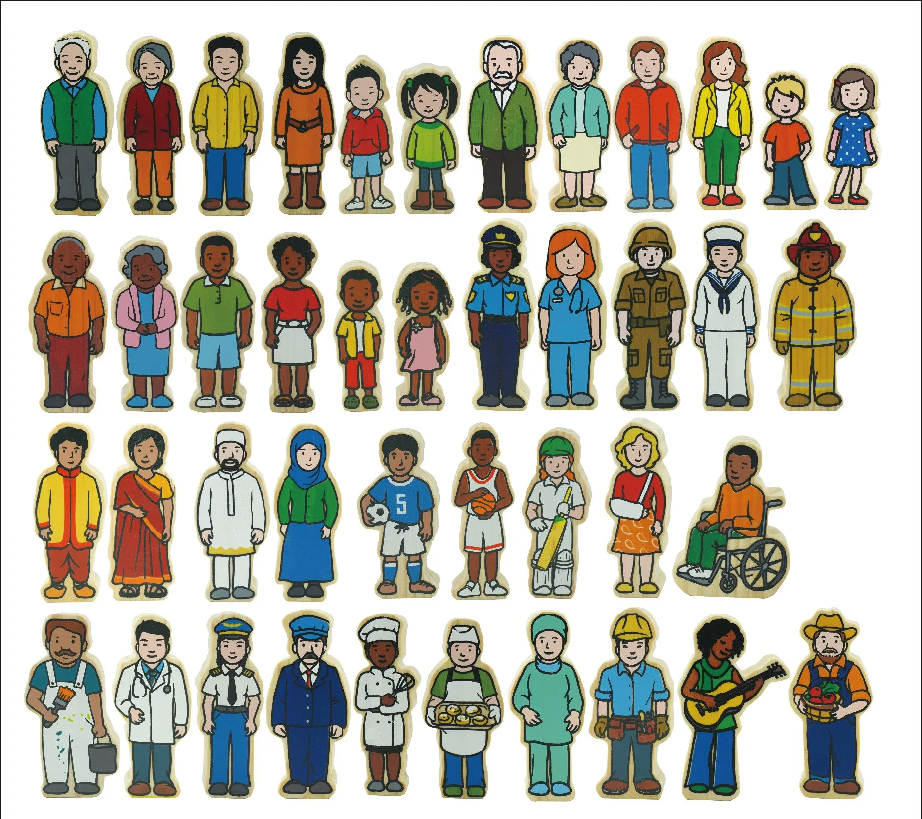 Das 42-teilige Holzspielzeug für Kinder ab 3 Jahren ist liebevoll gestaltet und durch die verwendeten Materialien langlebig. Egal ob im Kindergarten oder zu Hause bietet es Kindern unzählige Möglichkeiten. Verschiedene Kulturen, Altersgruppen und Berufe werden spielend entdeckt.