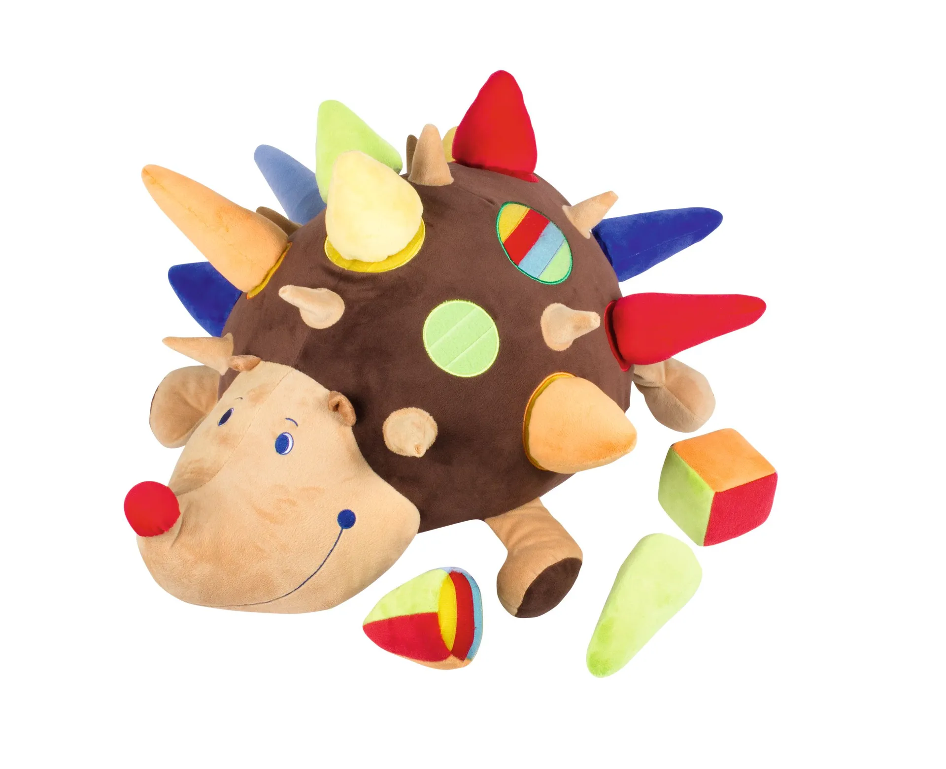 Erforschen, Fühlen und Spielen - der Wahrnehmungsigel Mucki ist ein farbenfrohes, kuscheliges Spielzeug, das die Sinne der Kleinen anregt und ihr Zuordnungsvermögen fördert. Hergestellt aus robustem, weichem Stoff, verfügt Mucki über 13 abnehmbare Stacheln, die farbliche Unterschiede aufweisen, um die visuelle Wahrnehmung der Kinder zu schärfen.