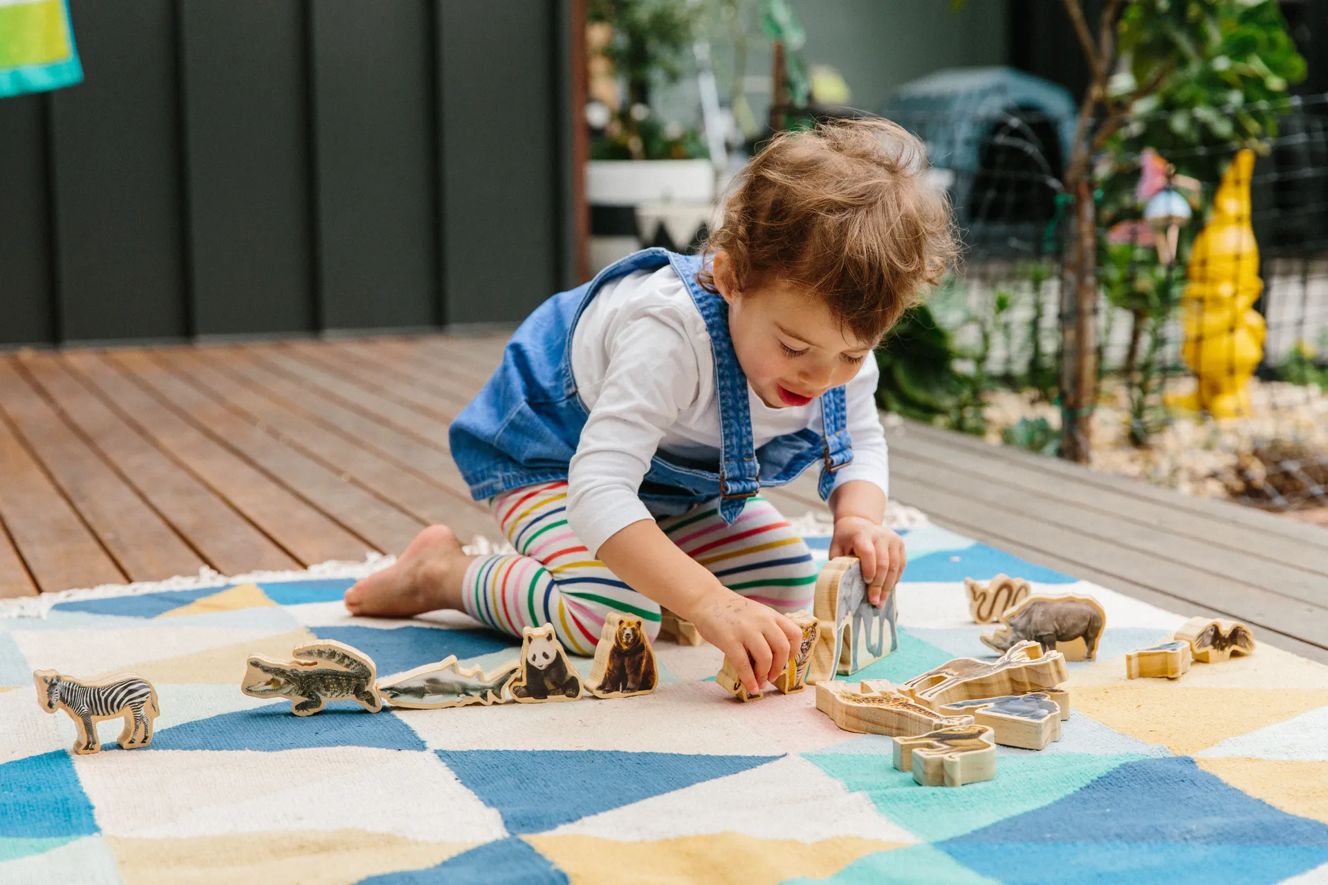 Das Thermotransferdruckverfahren sichert die leuchtenden Farben der Tiere, die durch einen matten Klarlack geschützt werden. Dies garantiert lange Haltbarkeit und sicheres Spielen, da alle verwendeten Farben ungiftig sind. Die glatt polierten Kanten jeder Figur minimieren die Gefahr von Splittern und gewährleisten ein angenehmes Tastgefühl.