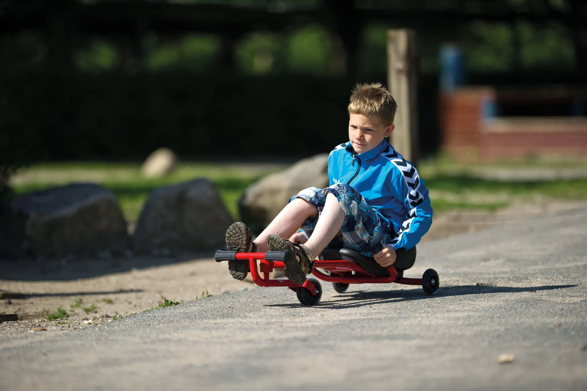 Eines der herausragenden Merkmale des Winther Foot Twister ist die Art und Weise, wie Kinder ihn bedienen. Anstatt mit den Füßen zu treten, müssen die Kinder mit ihren Füßen die seitlich angebrachten Pedale bewegen, um den Winther Foot Twister vorwärts zu bewegen. Diese ungewöhnliche Antriebsart macht den Winther Foot Twister nicht nur einzigartig, sondern sorgt auch für eine ganz neue Art des Fahrspaßes.