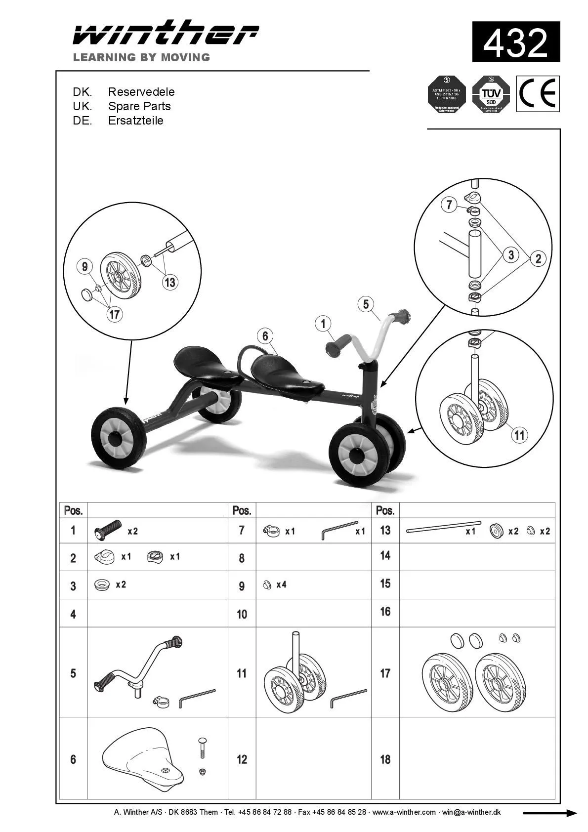 Neben dem spielerischen Aspekt fördert das Fahren mit dem Winther Dreirad auch die körperliche Aktivität und die Muskelentwicklung. Darüber hinaus lernen die Kinder, ihr Gleichgewicht zu halten und ihre Koordination zu verbessern. Die soziale Interaktion wird durch gemeinsame Fahrten und Spiele ebenfalls unterstützt.
