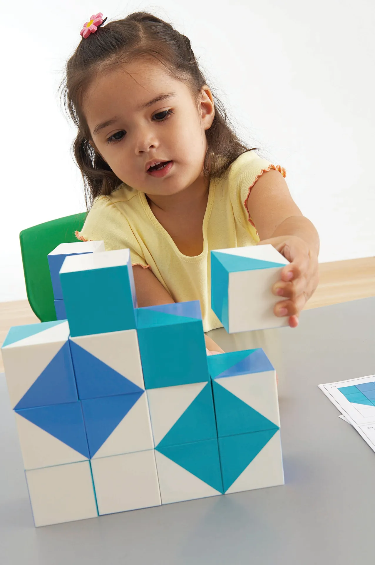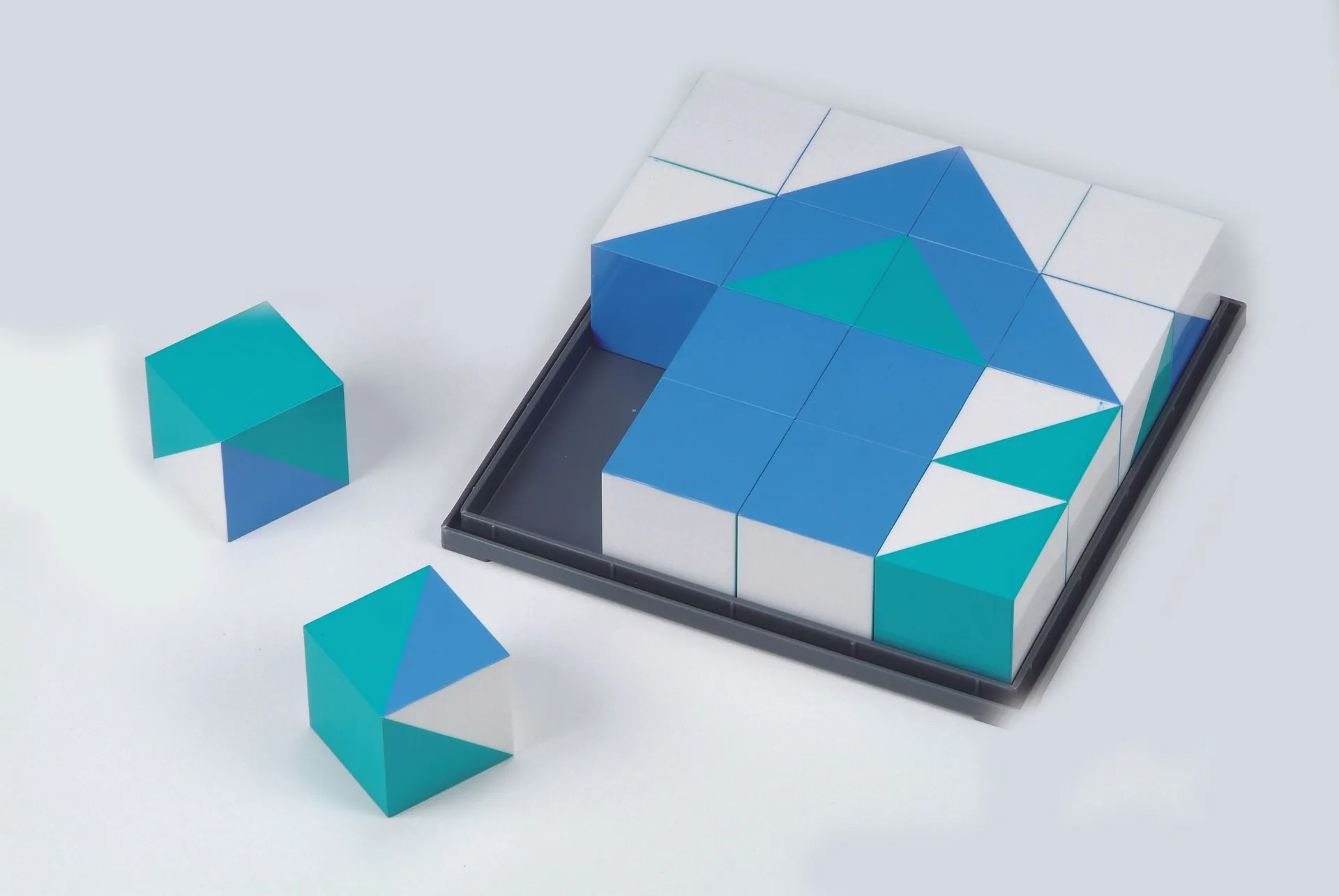 Die 16 Würfel überzeugen durch ihr dynamisches Design, wobei jedes Stück durch ein einzigartiges Muster von Drei- und Sechsecken auf jeder seiner Seiten besticht. Das harmonische Farbspiel von Grasgrün und Flieder entführt in die lebendige Welt des Regenwaldes und inspiriert zu eigenen Kreationen. Das Spiel wird durch die 6 doppelseitigen Vorlagekarten bereichert, die zum Nachbilden oder zur Gestaltung neuer Kunstwerke einladen. Dabei sorgt der robuste ABS-Kunststoff für eine langlebige Qualität und unzählige Stunden kreativen Spielspaßes. Abgerundet wird das Set durch eine praktische Kunststoffbox, die eine übersichtliche und einfache Lagerung der Würfel ermöglicht.